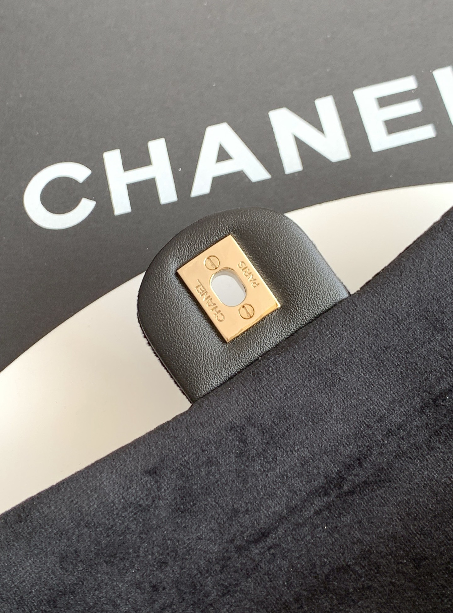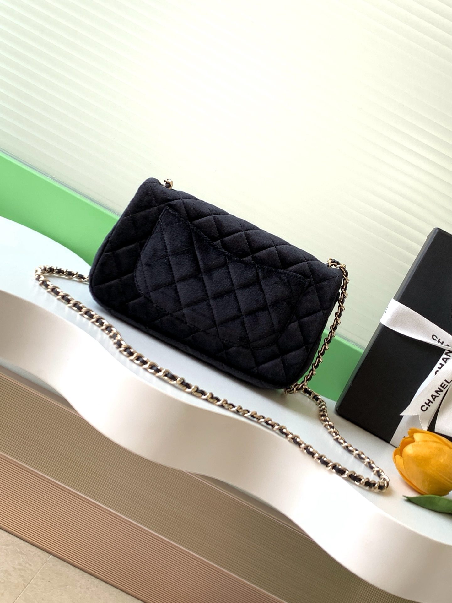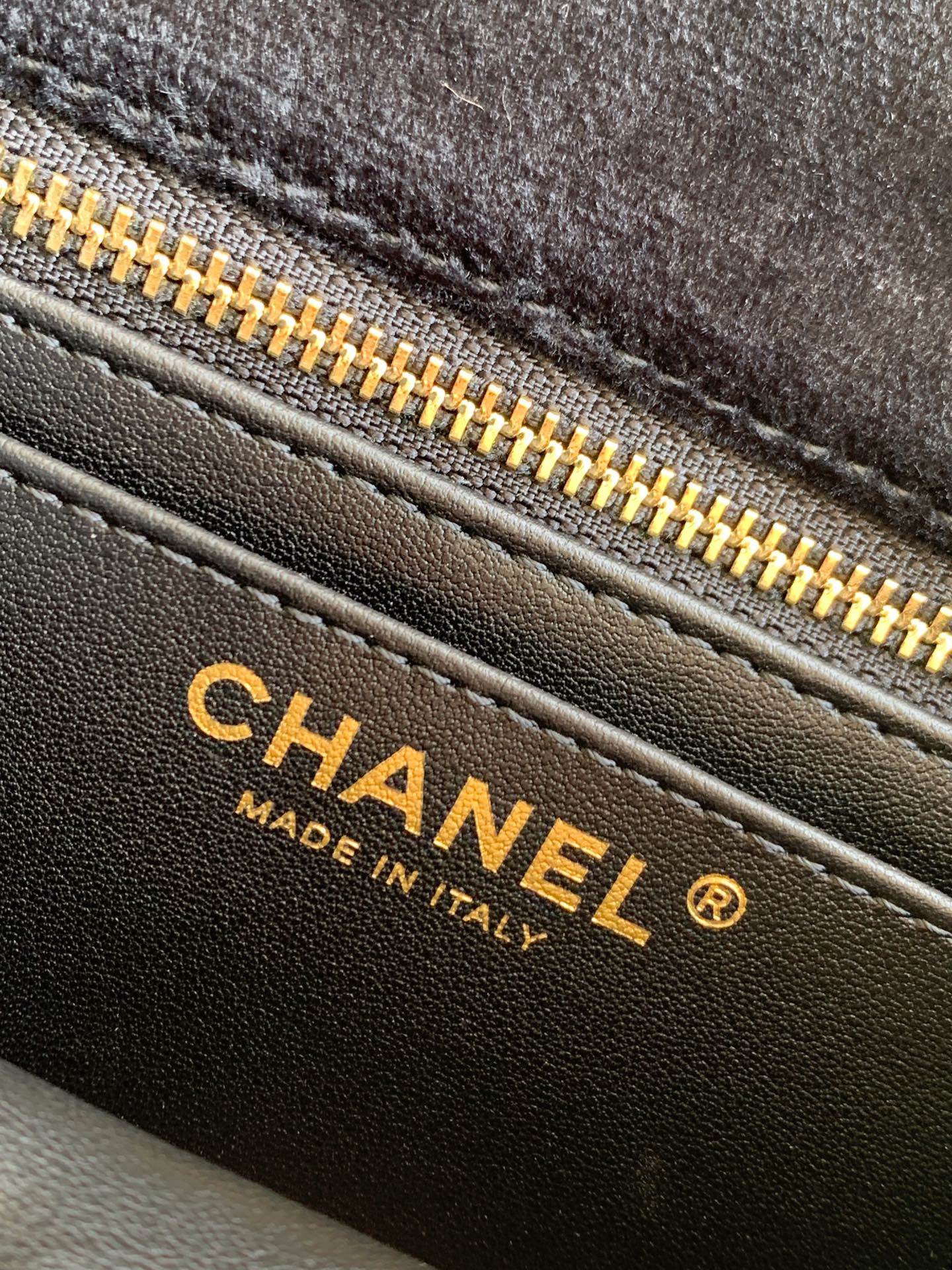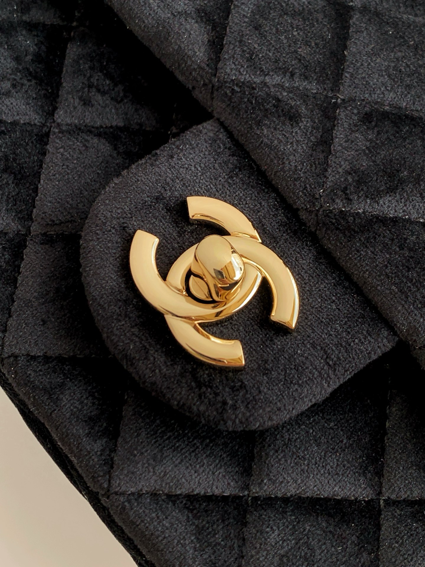 Chanel Classic Flap Bag 25a Velvet with Diamante Ball, Black, 13-20-7 cm
