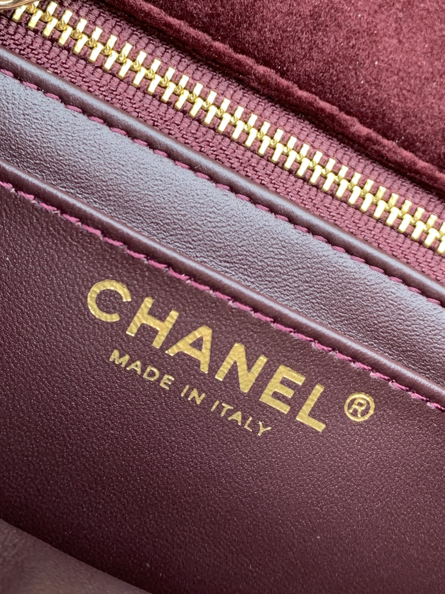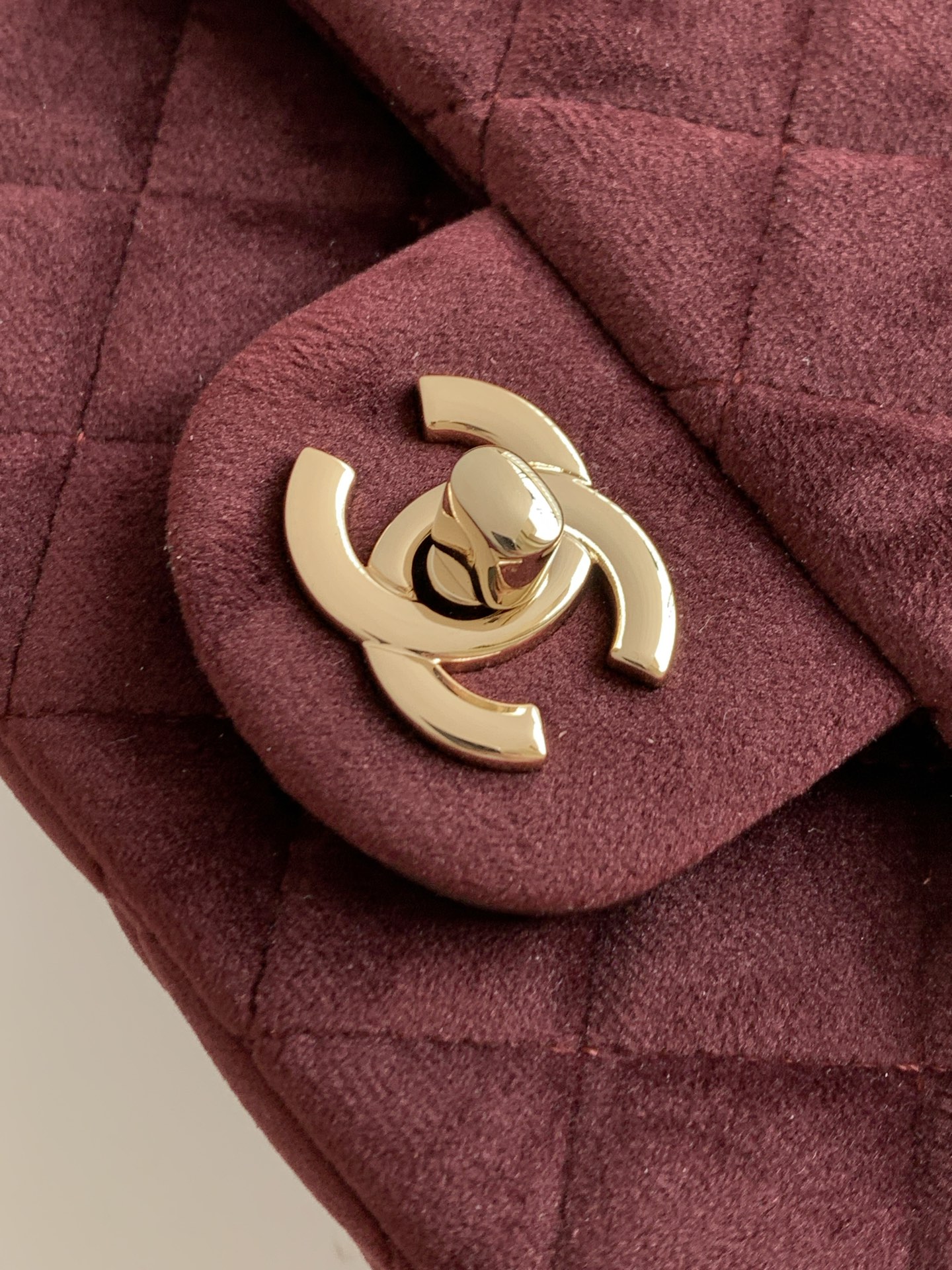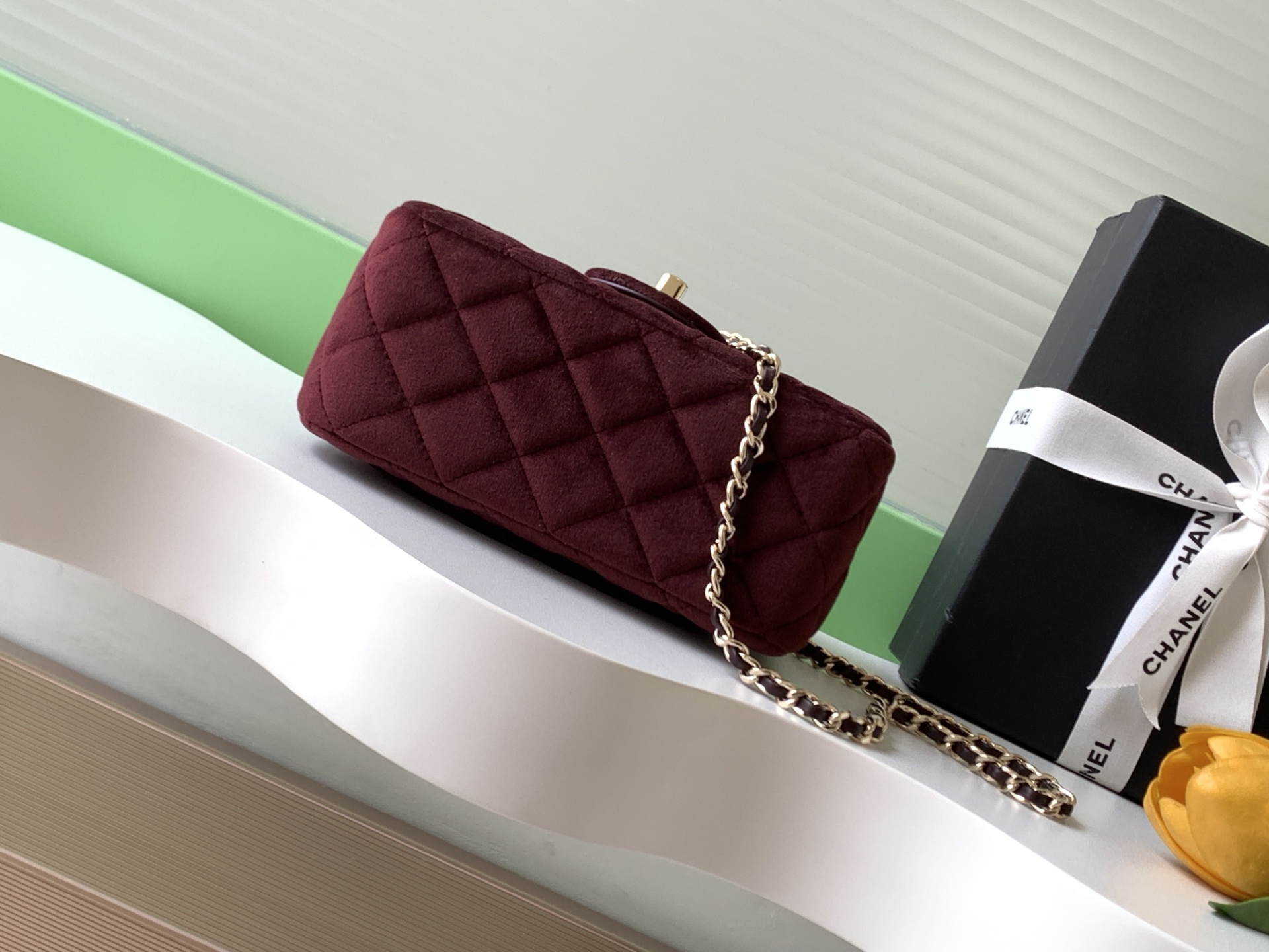 Chanel Classic Flap Bag 25A Velvet with Diamond Ball, Burgundy, 13-18-7cm