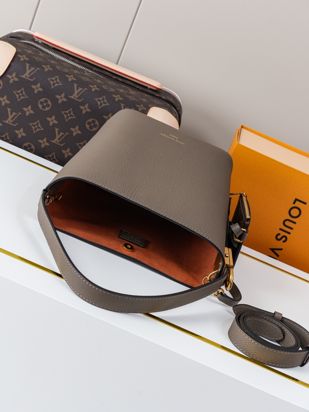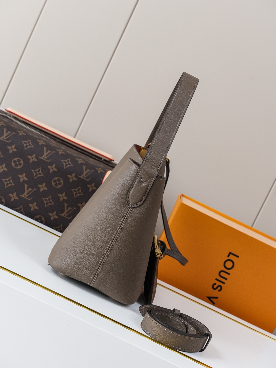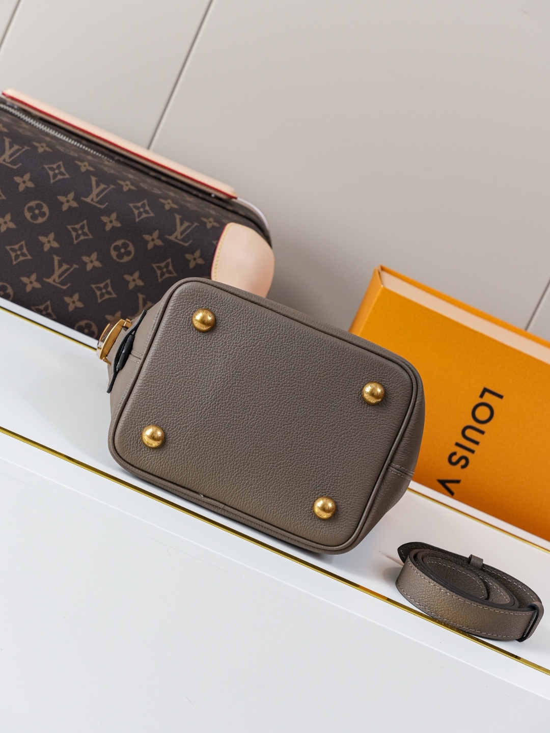Tags: All In BB Bag, Compact Shoulder Bag, Designer Bucket Bag, Gray Leather Handbag, Louis Vuitton Bucket Bag, Monogram Pocket Bag