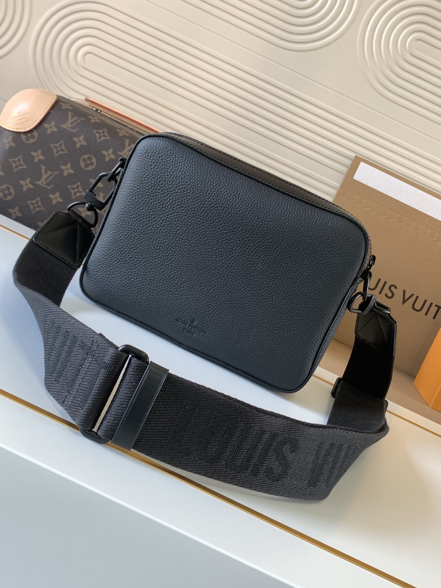 Tags: Black Leather Crossbody Bag, Designer Men's Bag, Everyday Carry Bag, Louis Vuitton Messenger Bag, Luxury Shoulder Bag