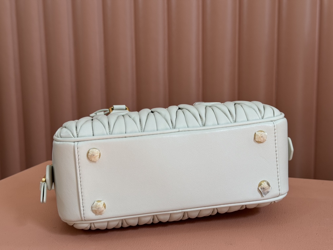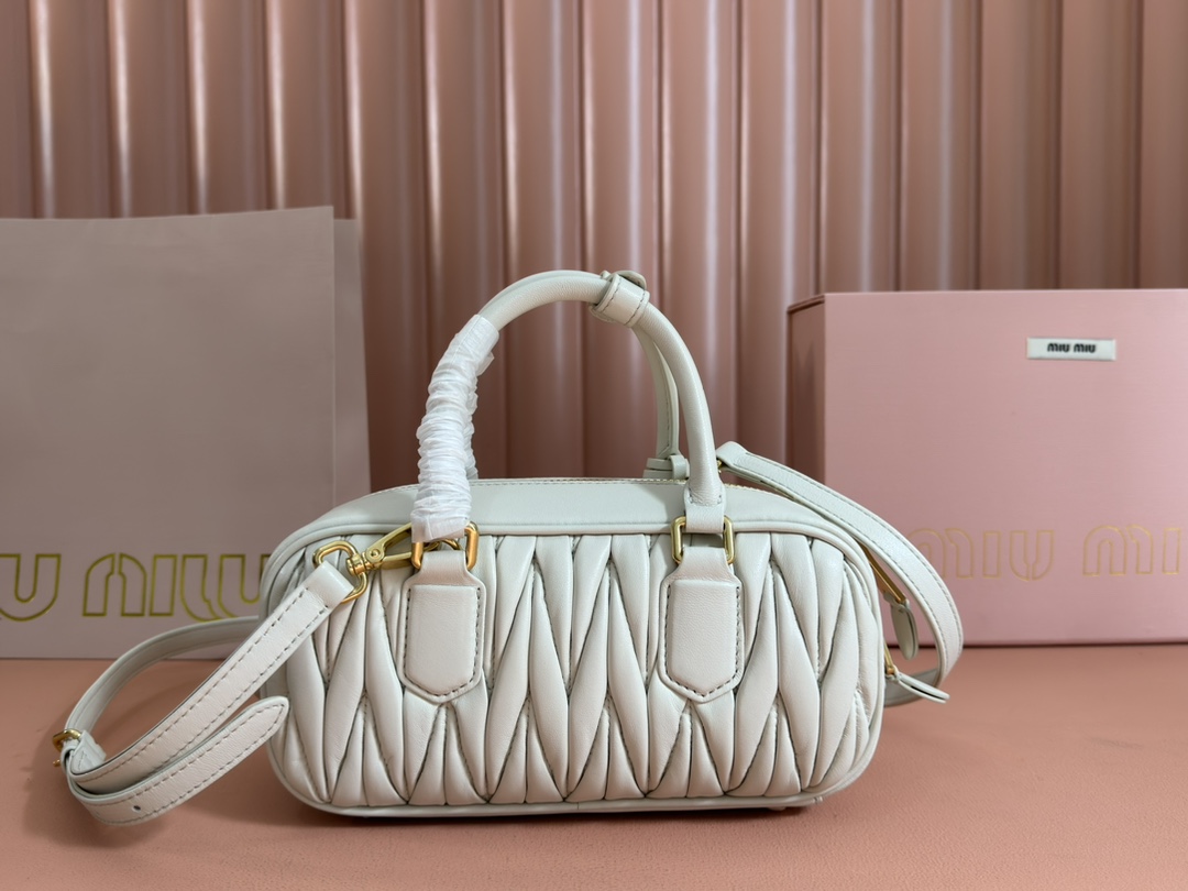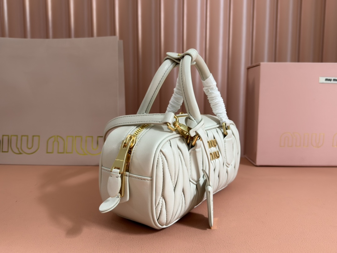 Tags: Designer Crossbody Bag, Gold Hardware Bag, Luxury Lambskin Bag, Miu Miu Arcadia Bag, White Leather Handbag