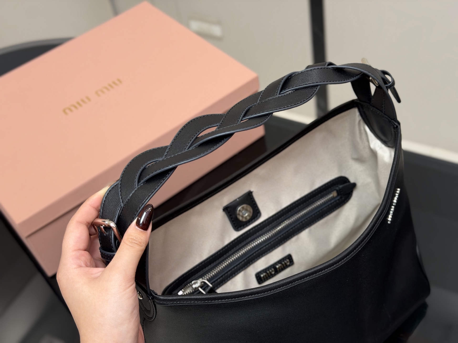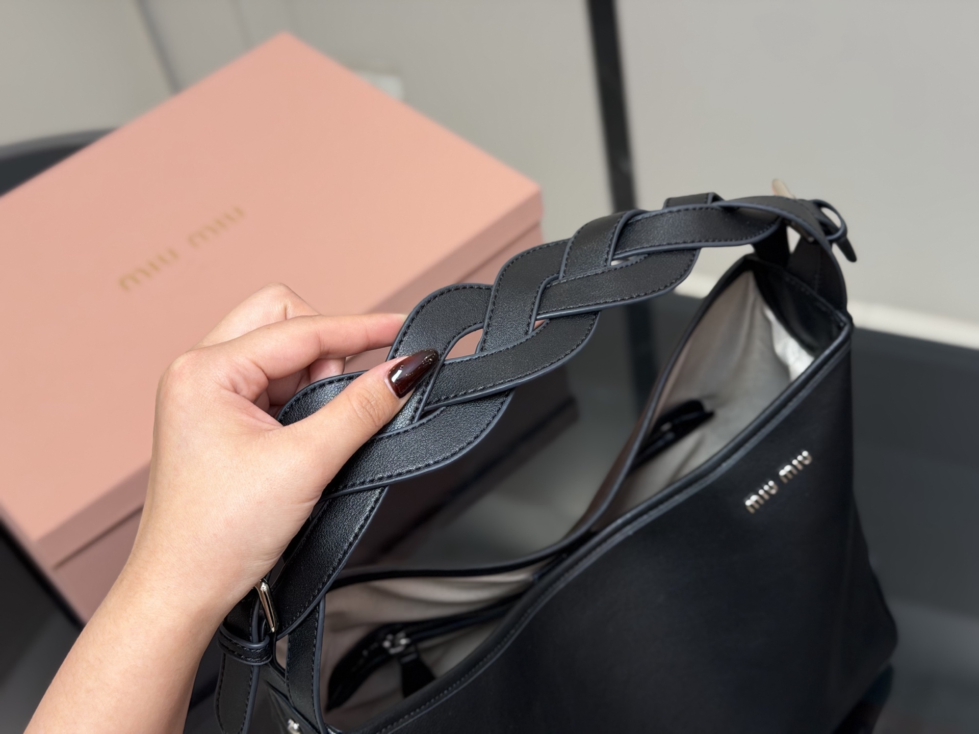 Miu Miu Tote Bag, Large Leather Handbag with Braided Shoulder Strap