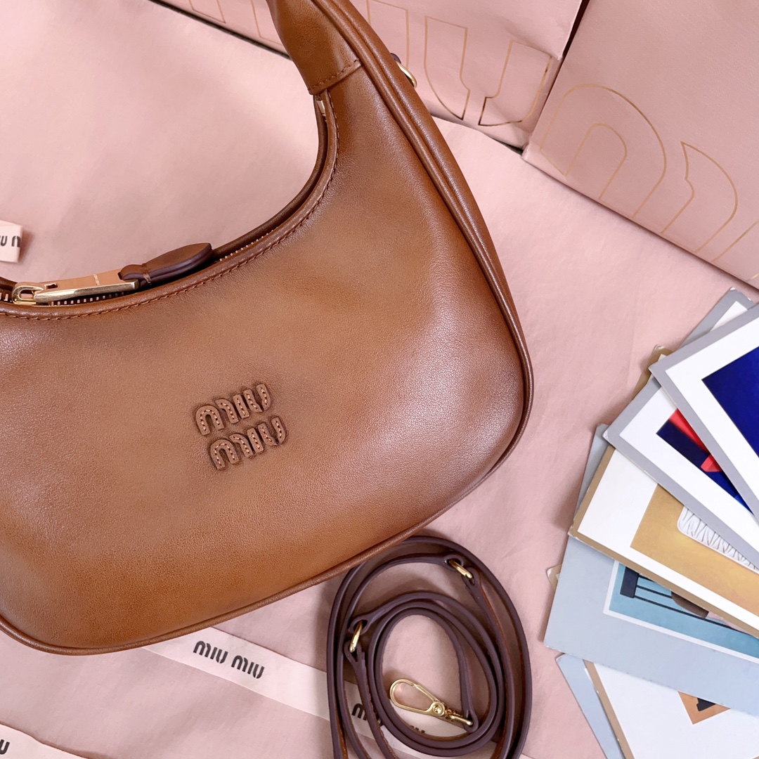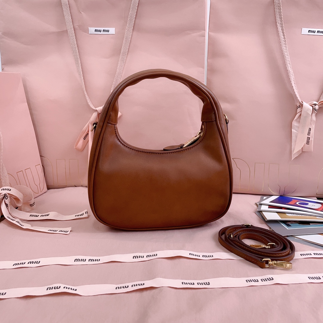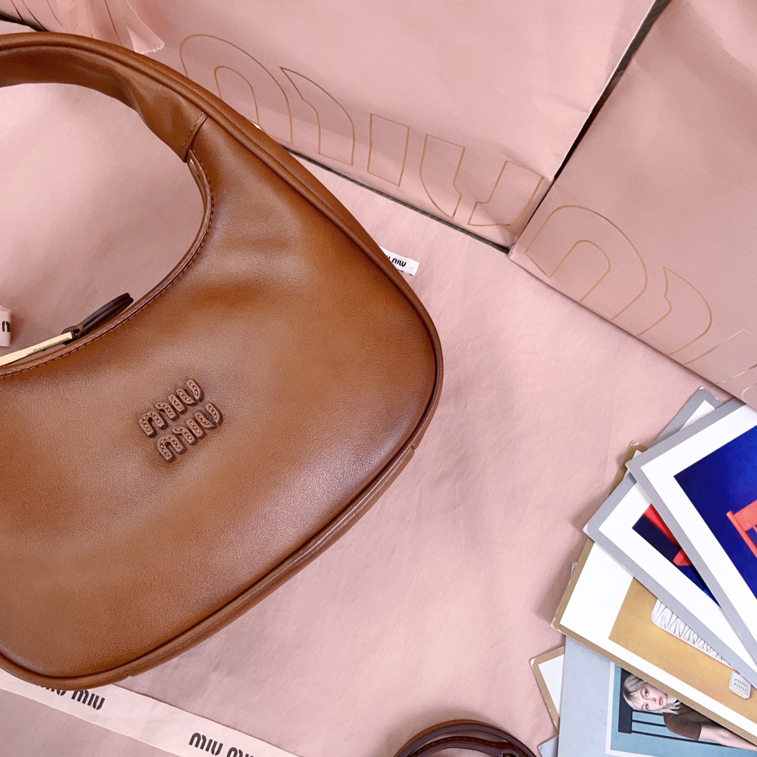 Tags: Brown Leather Hobo Bag, Everyday Designer Bag, Miu Wander Bag, Small Leather Purse, Sporty Elegant Bag, Vintage Leather Handbag