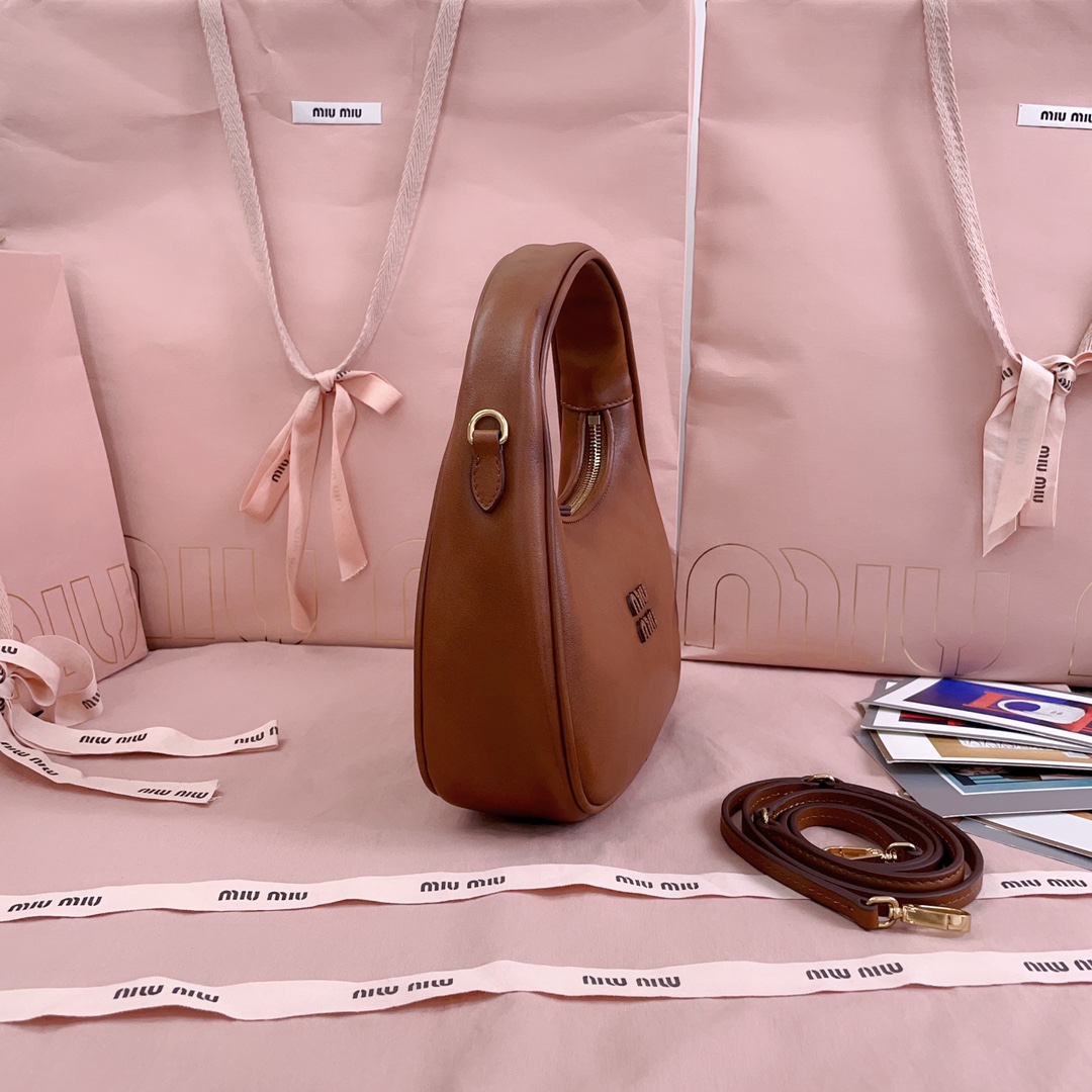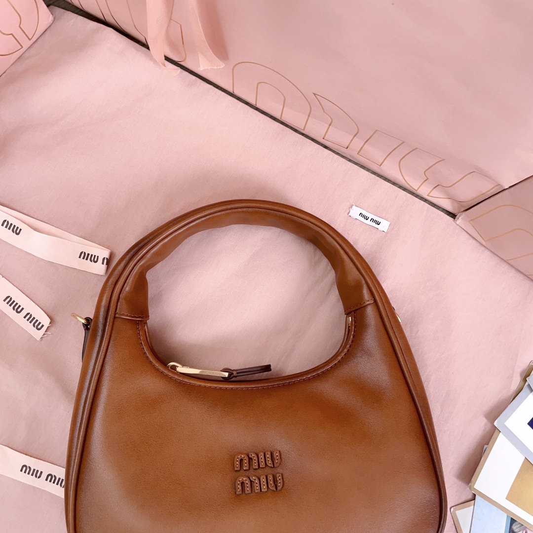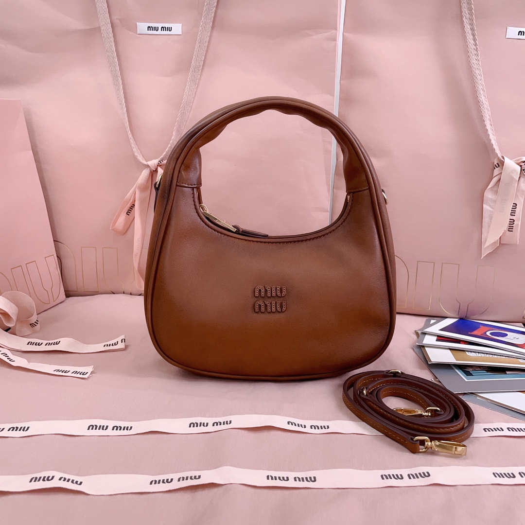 Tags: Brown Leather Hobo Bag, Everyday Designer Bag, Miu Wander Bag, Small Leather Purse, Sporty Elegant Bag, Vintage Leather Handbag