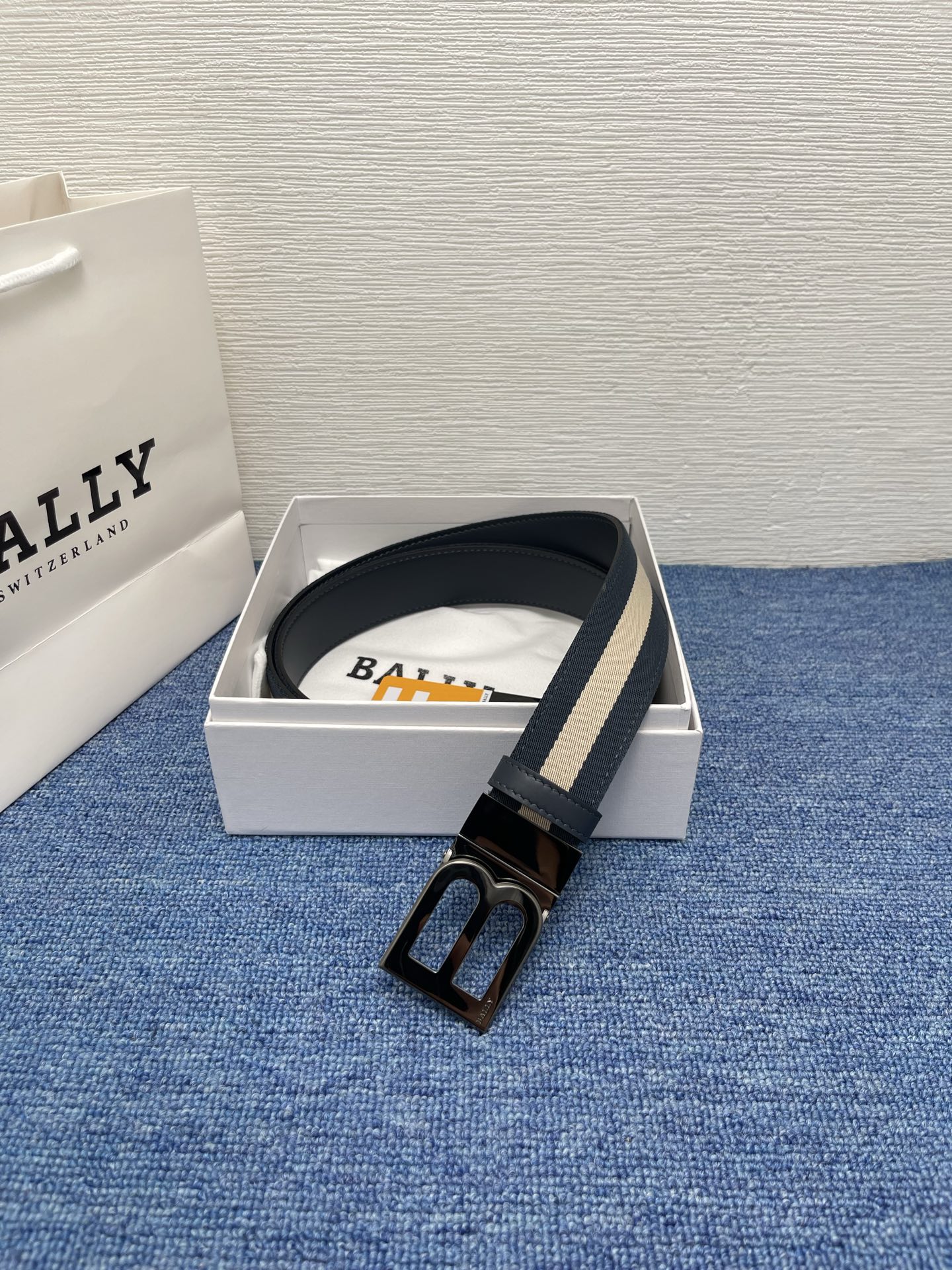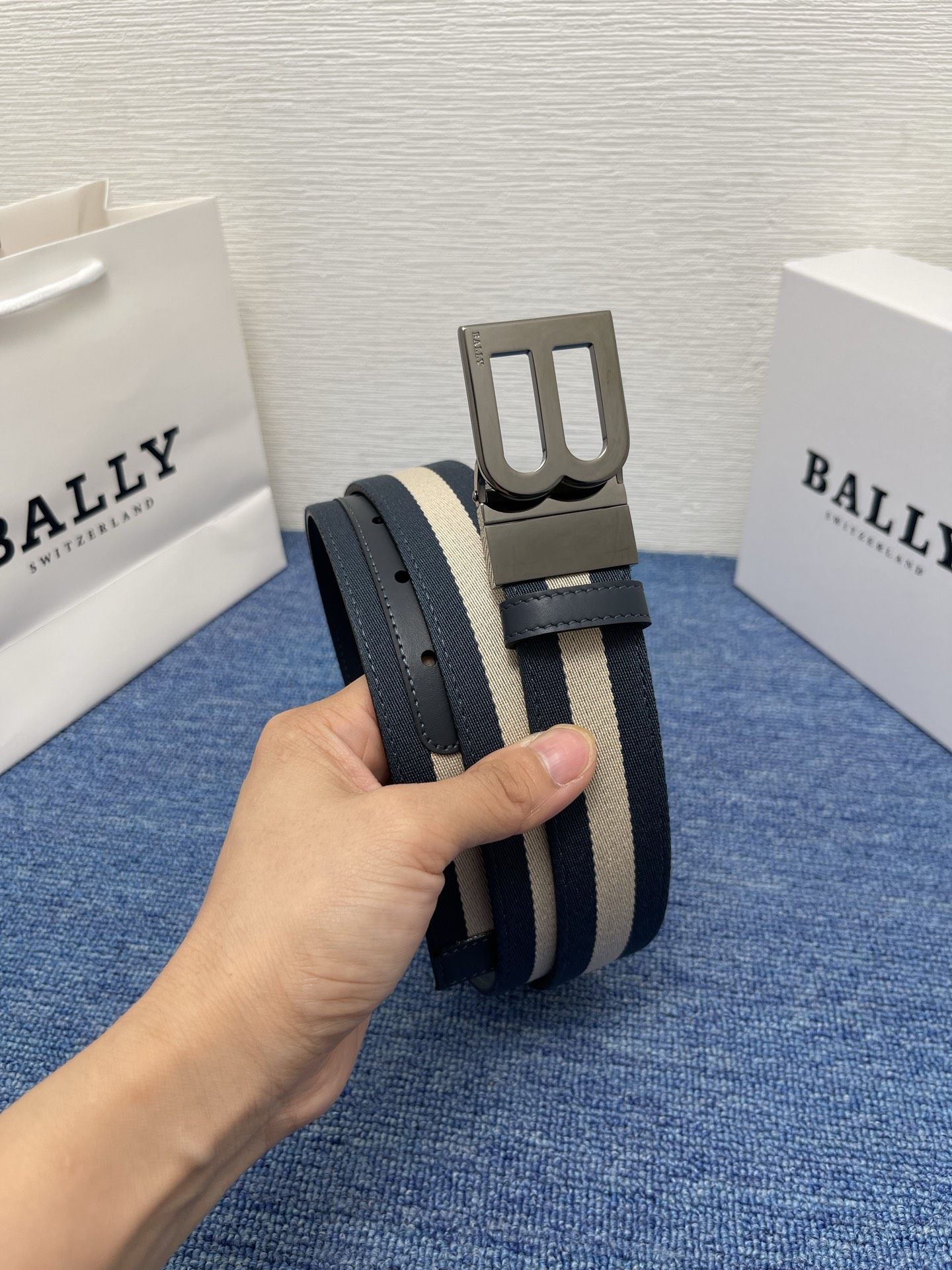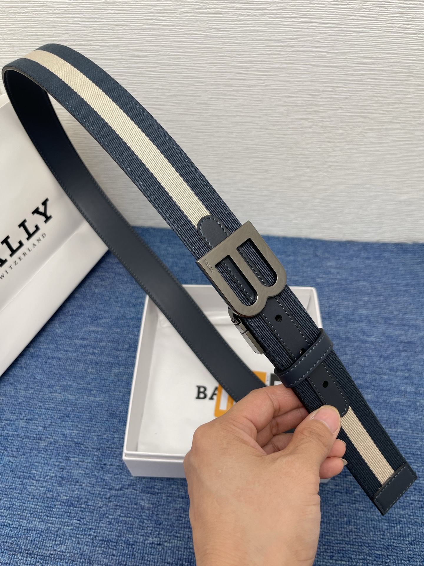 - Classic metal buckle with Bally logo