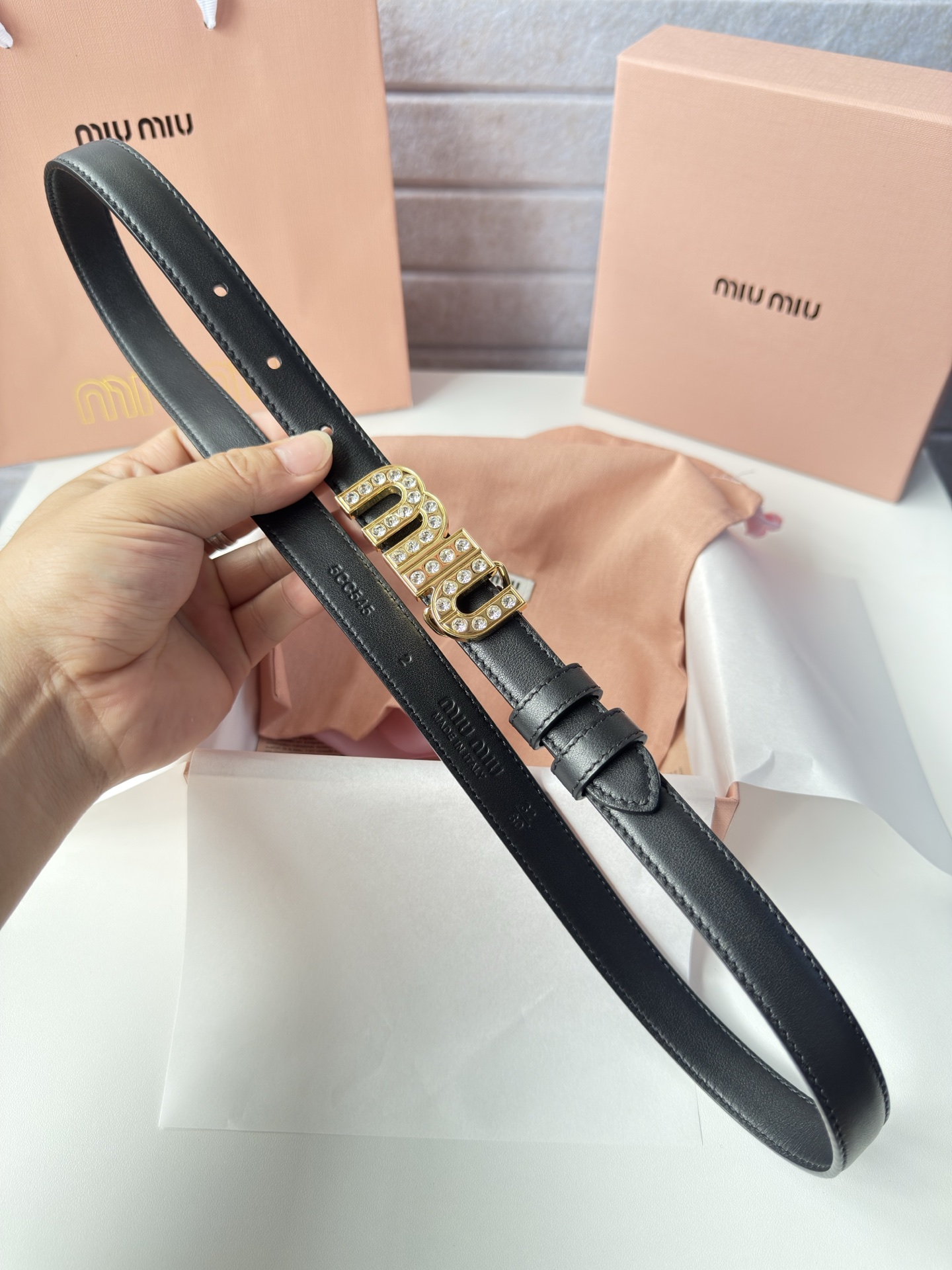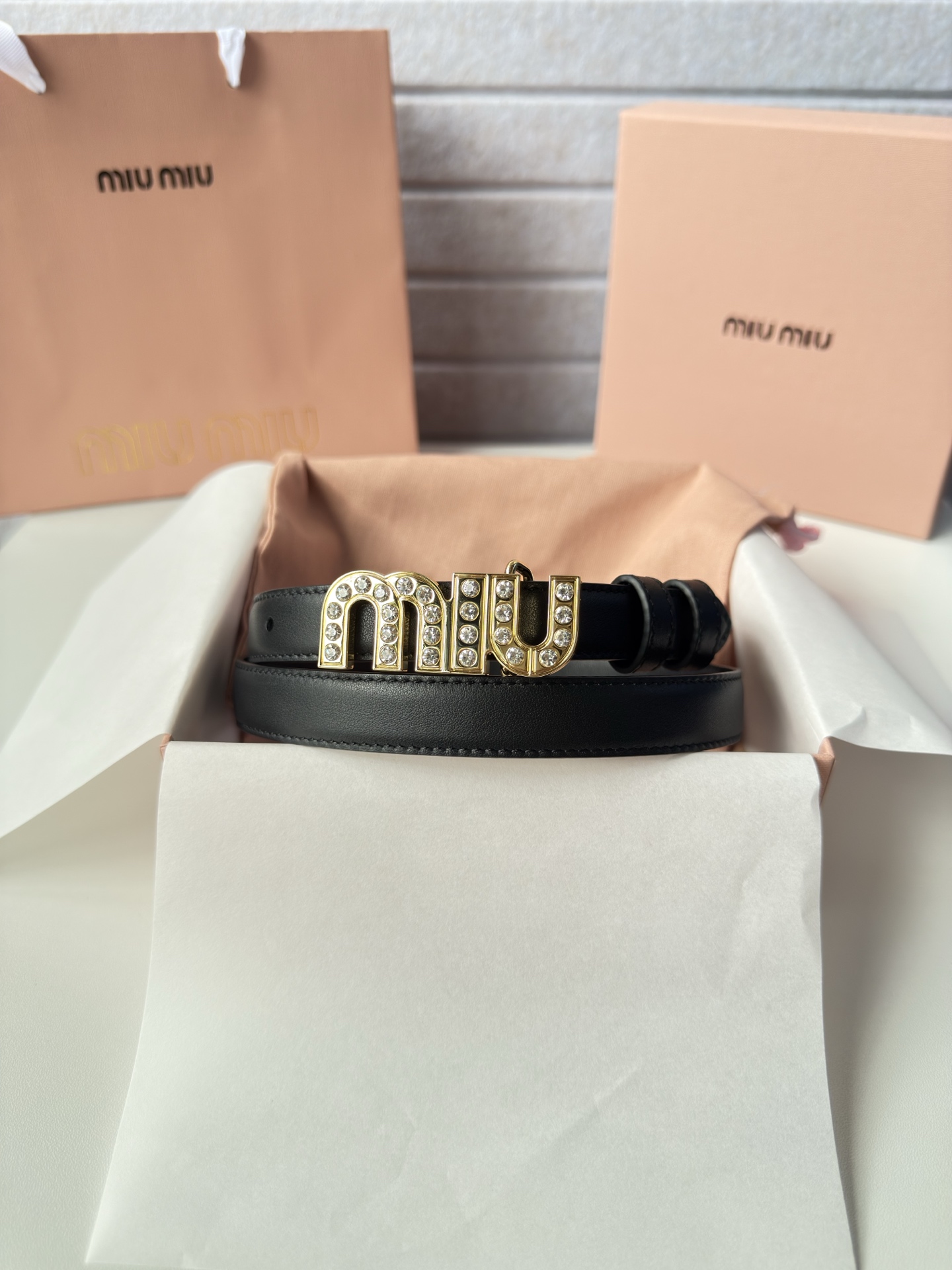 Miu Miu Black Leather Belt with Crystal Logo Buckle, 20mm Width