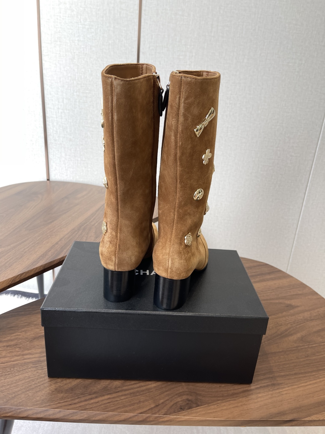 Chanel Women's Suede Round Toe Zipper Ankle Boots with Embellishments
