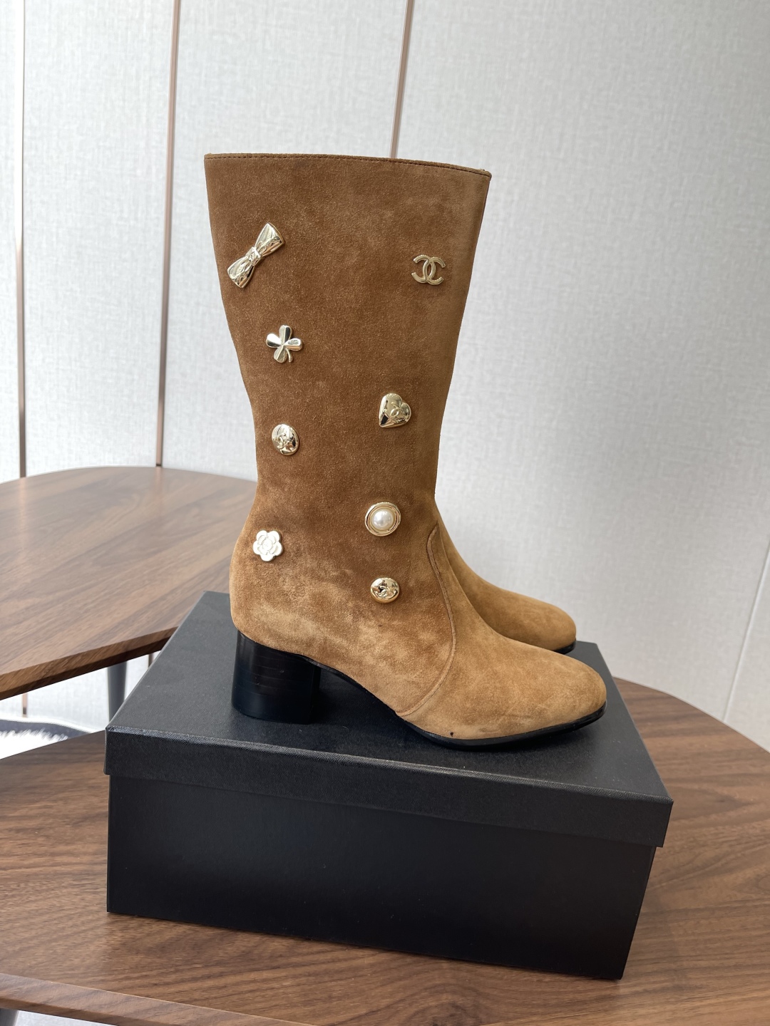Tags: Chanel Ankle Boots, Designer Boots, Embellished Boots, Round Toe Boots, Suede Ankle Boots, Zipper Ankle Boots