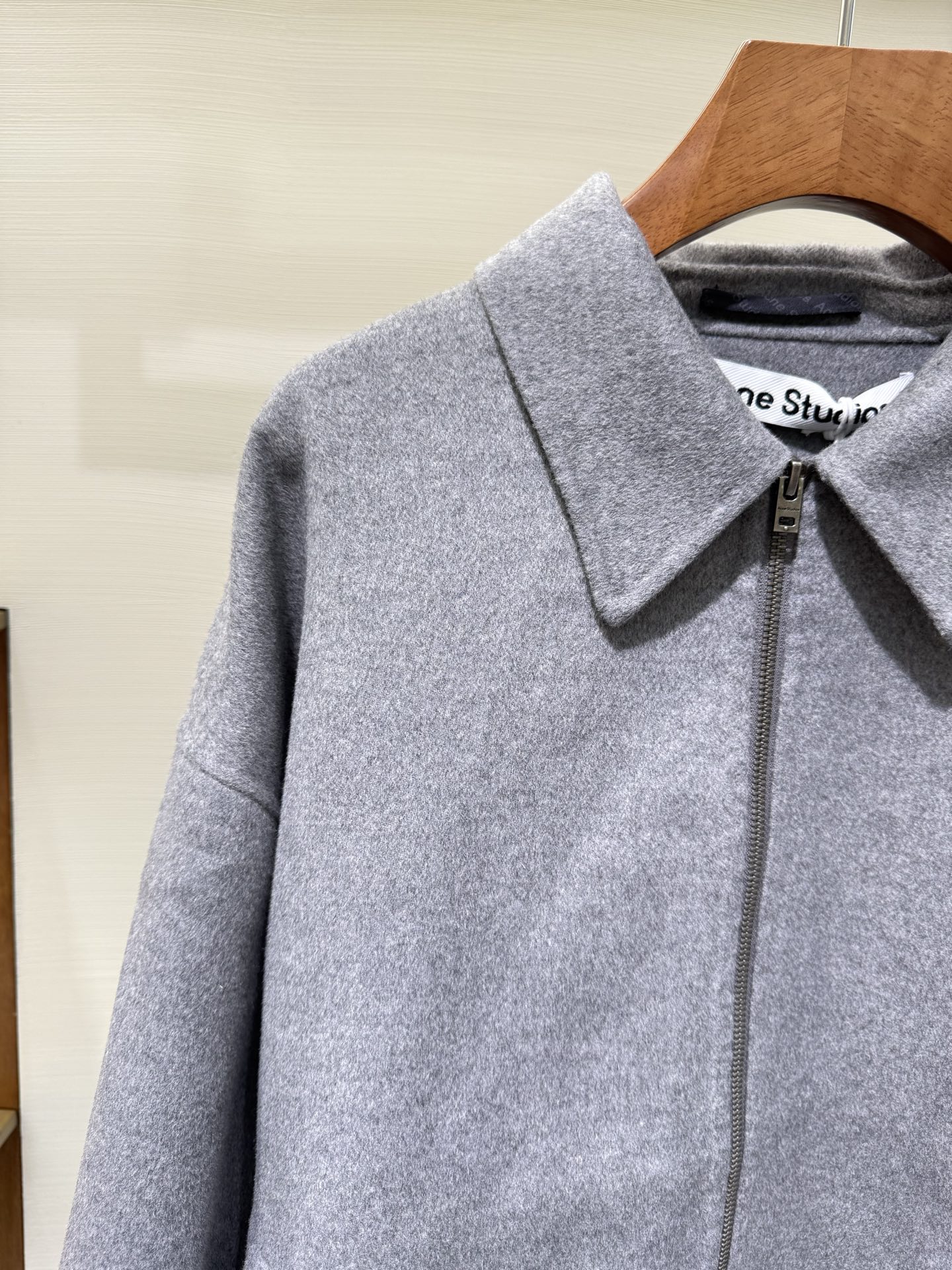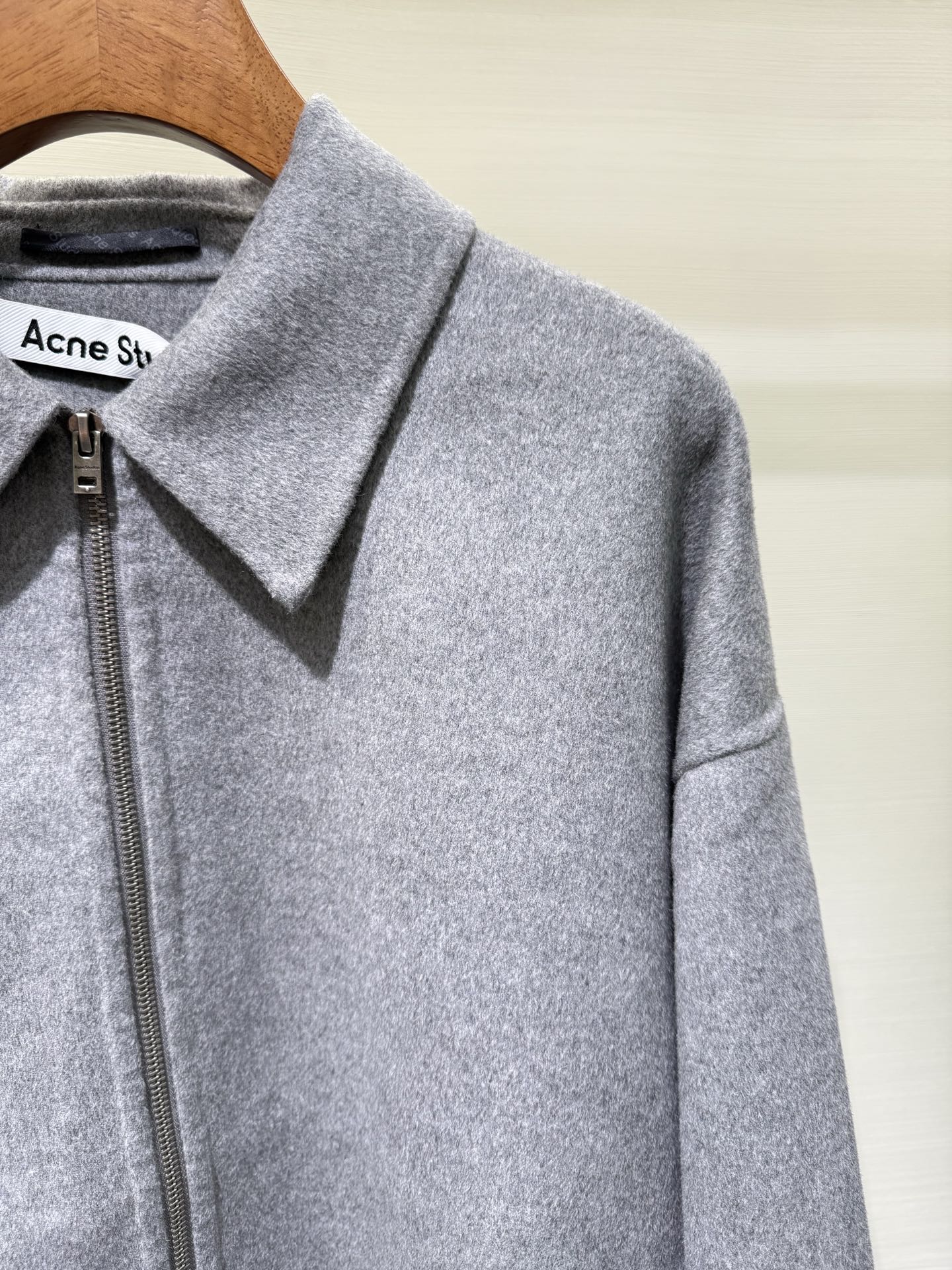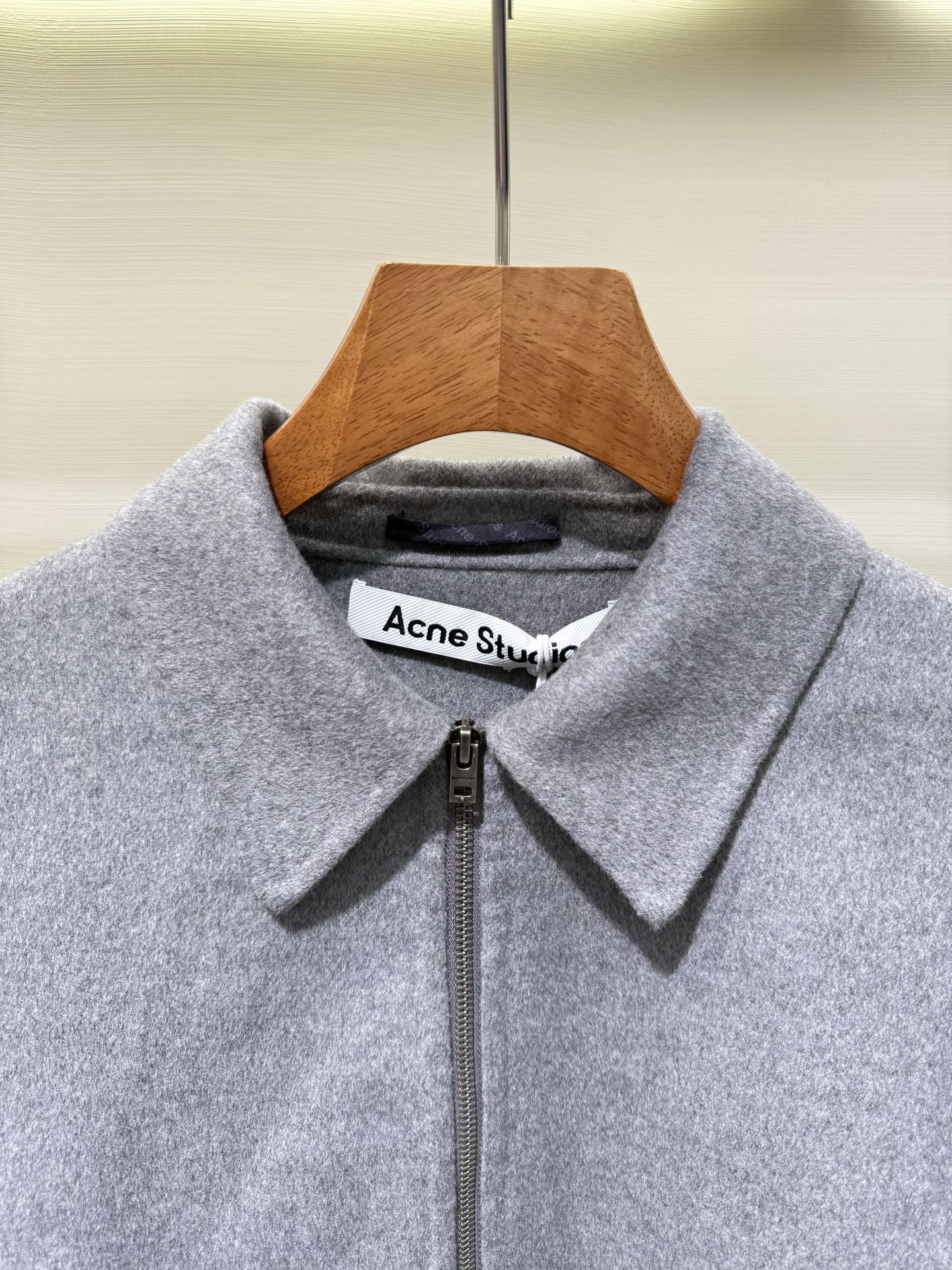Tags: Acne Studios Jacket, Gray Wool Jacket, Point Collar Jacket, Relaxed Fit Jacket, Wool Blend Jacket, Zip Up Jacket