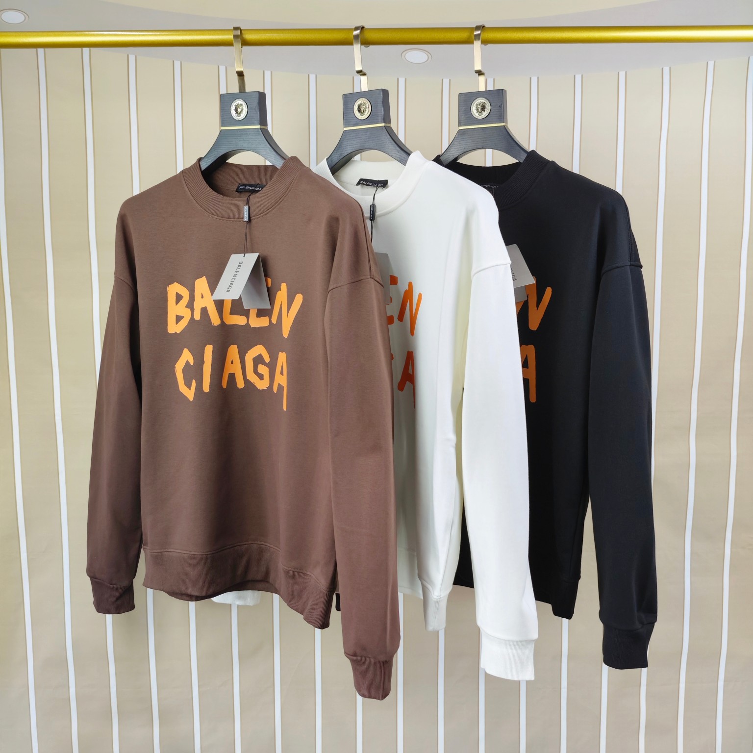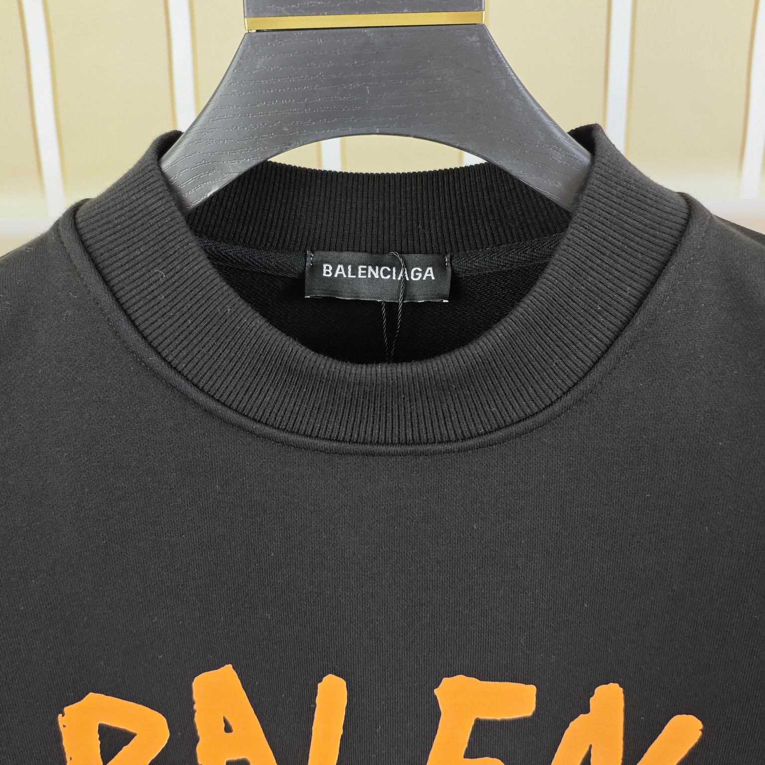 Tags: Balenciaga Sweatshirt, Casual Men's Top, Designer Sweatshirt, Men's Cotton Sweatshirt, Orange Logo Sweatshirt, Streetwear Sweatshirt