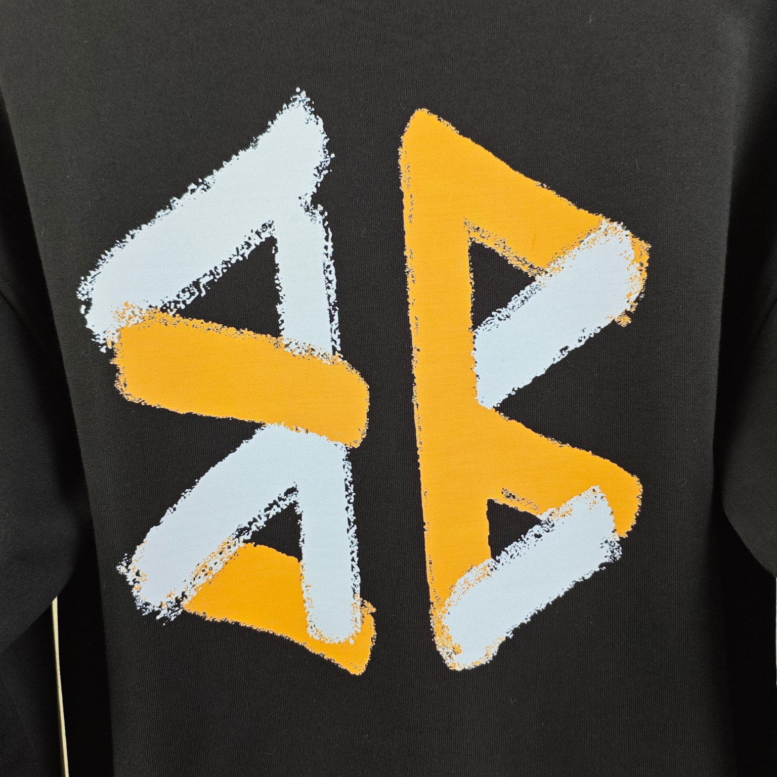 Balenciaga Men's Black Cotton Sweatshirt with Orange Logo Print