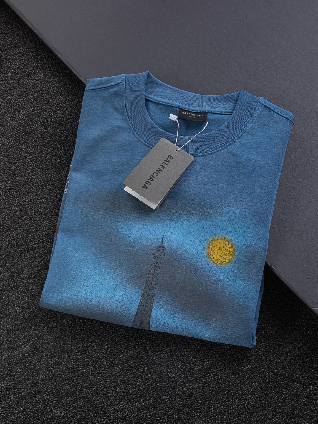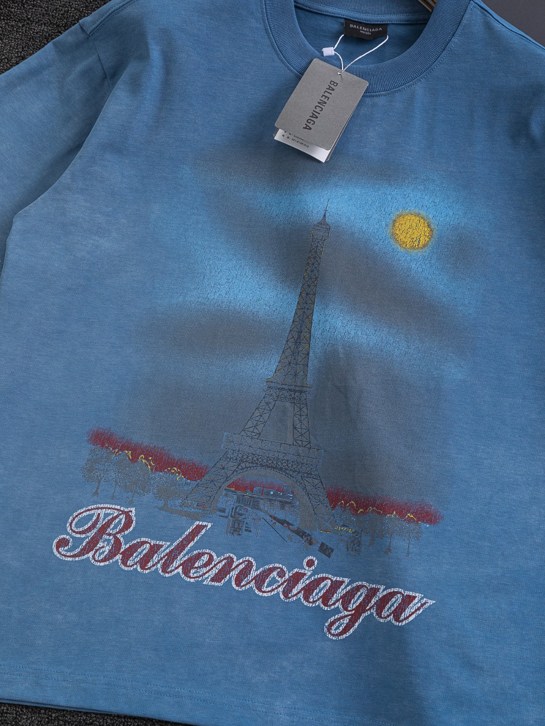 Tags: Balenciaga T-Shirt, Casual Fashion Top, Paris Tower Print Tee, Short Sleeve Tee, Unisex Cotton T-Shirt