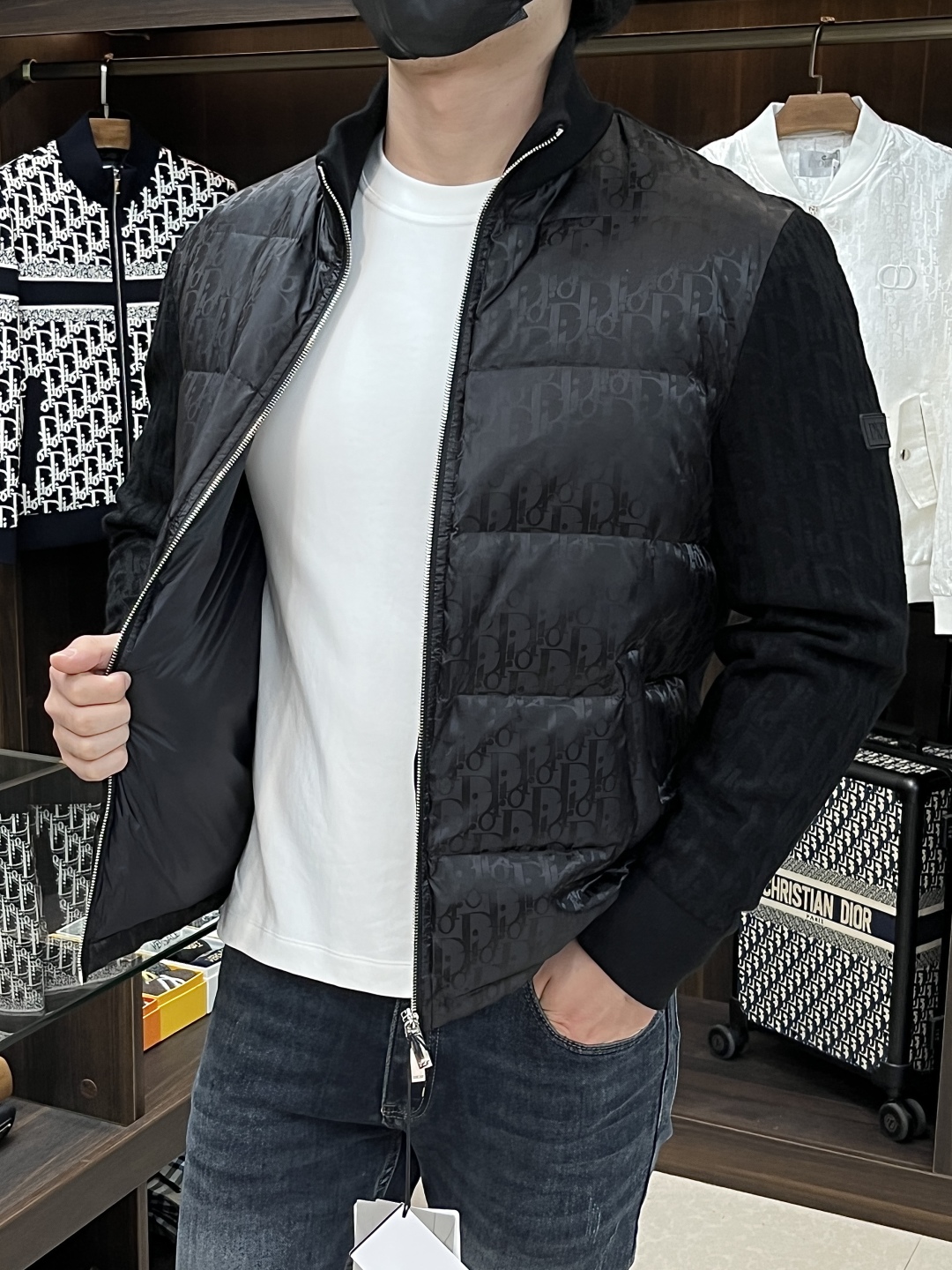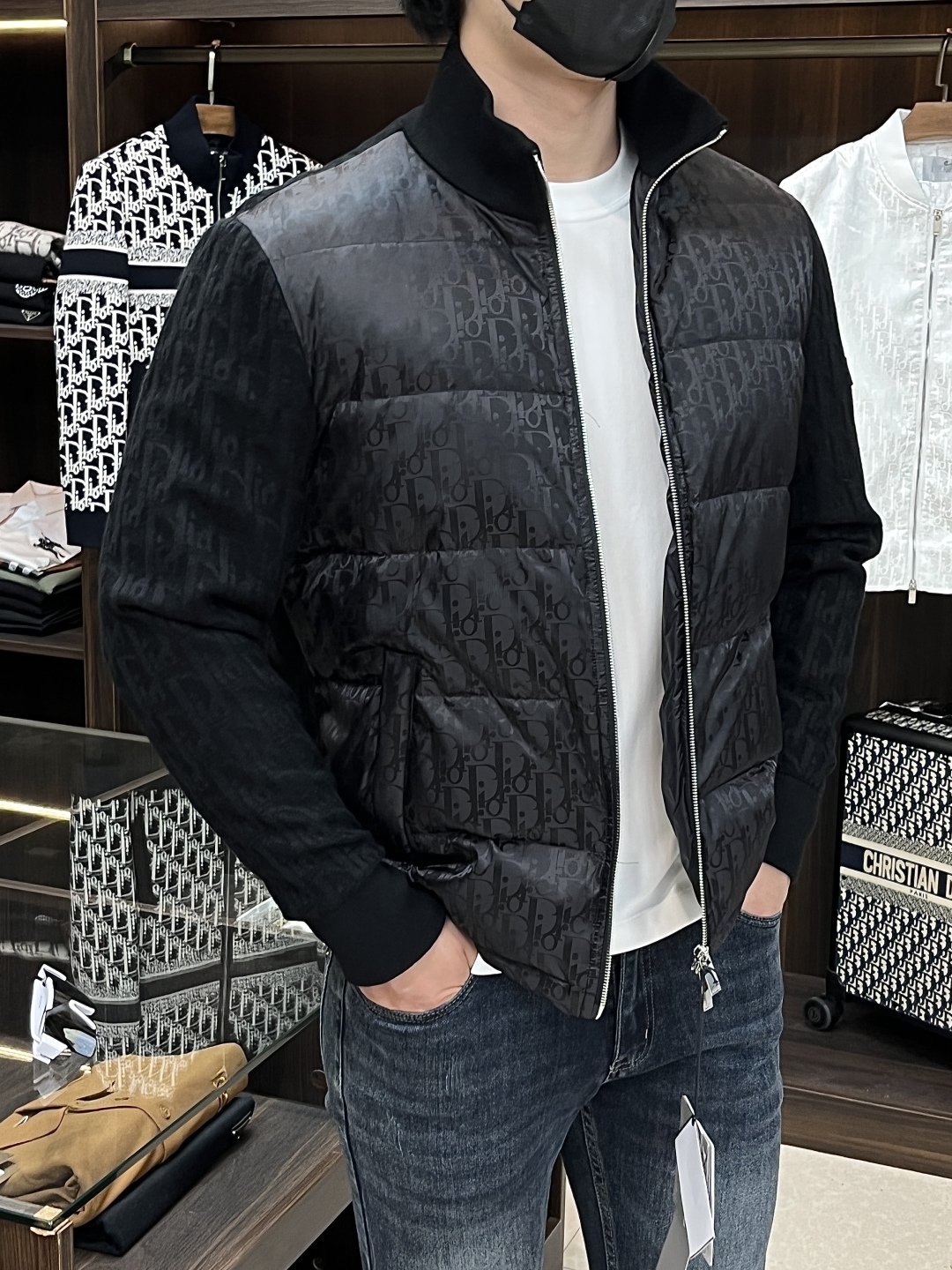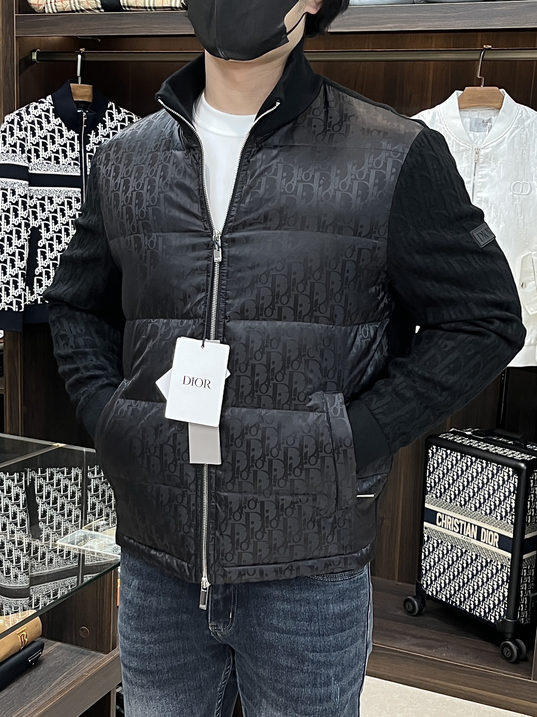 Tags: Dior Down Jacket, Jacquard Down Coat, Men Winter Coat, Stand Collar Puffer, Wool Sleeve Jacket
