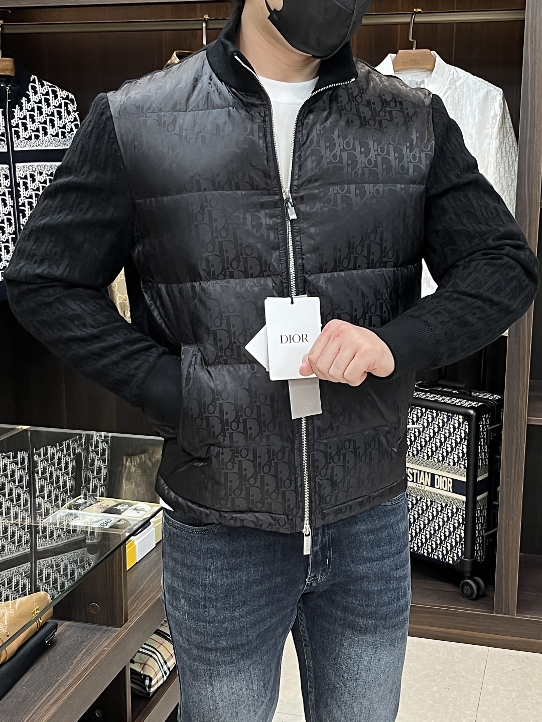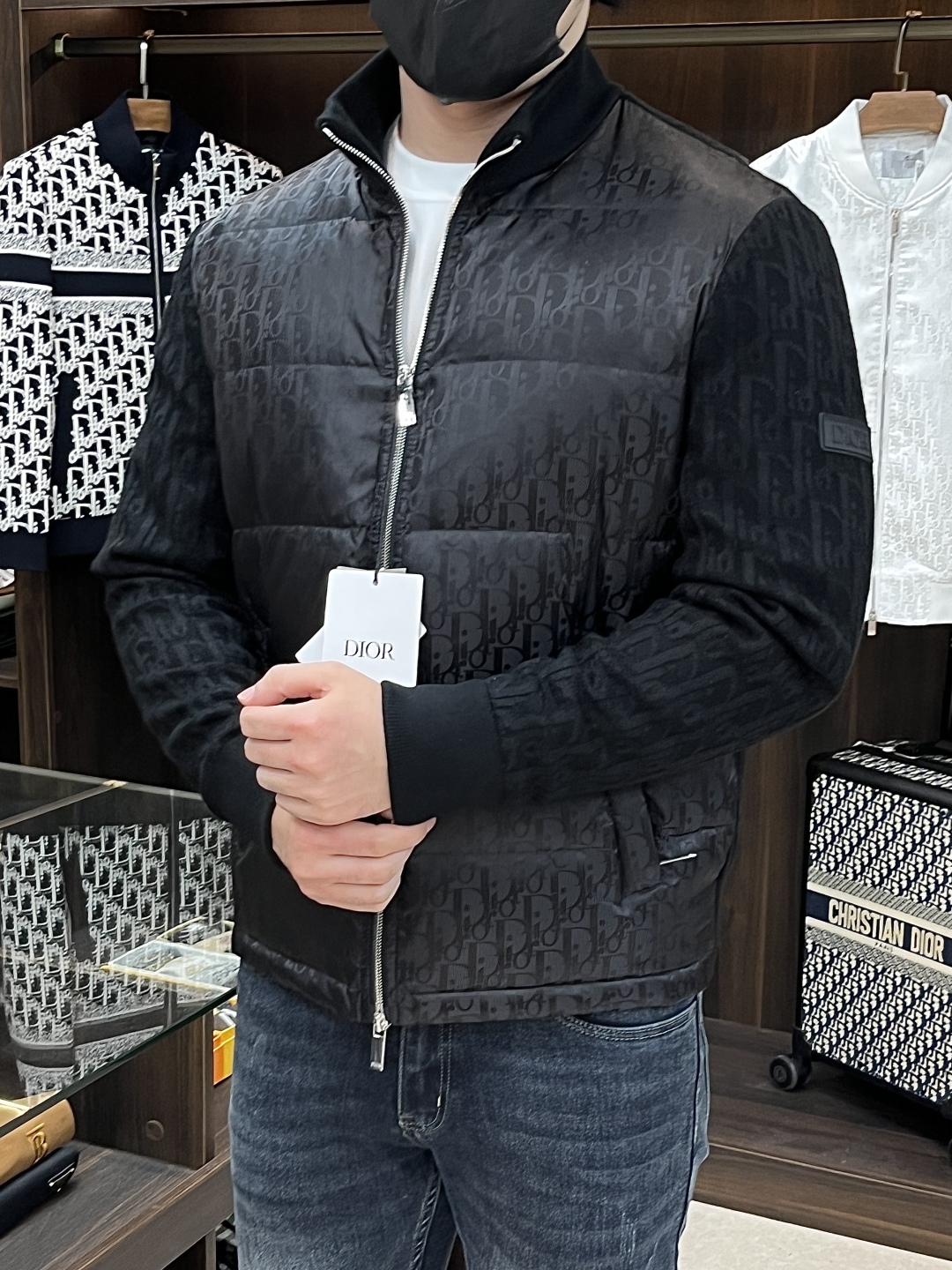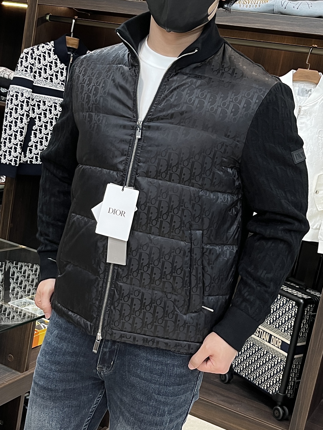 Tags: Dior Down Jacket, Jacquard Down Coat, Men Winter Coat, Stand Collar Puffer, Wool Sleeve Jacket