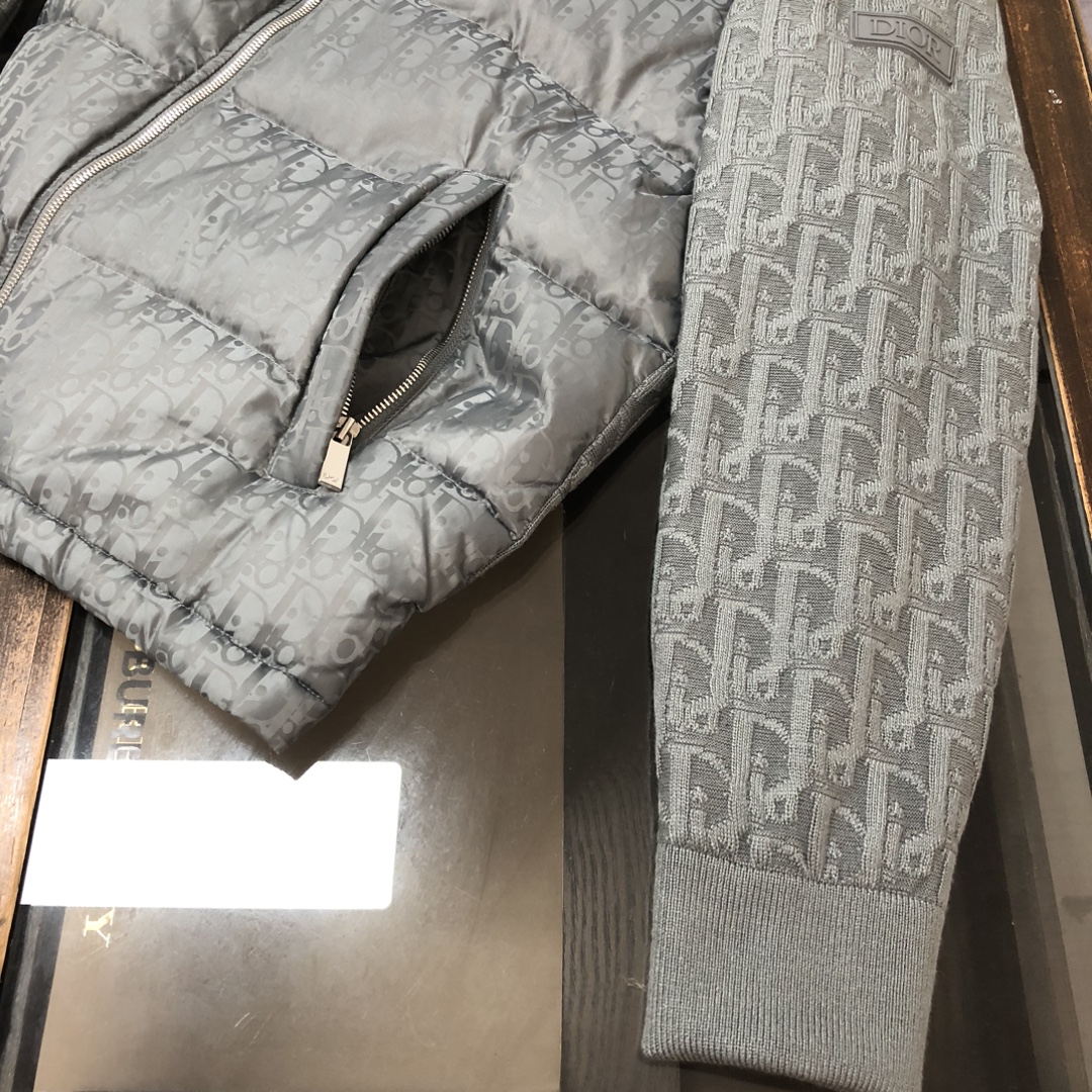 Tags: Designer Puffer Coat, Dior Down Jacket, Luxury Outerwear, Oblique Logo Jacket, Wool Knit Jacket
