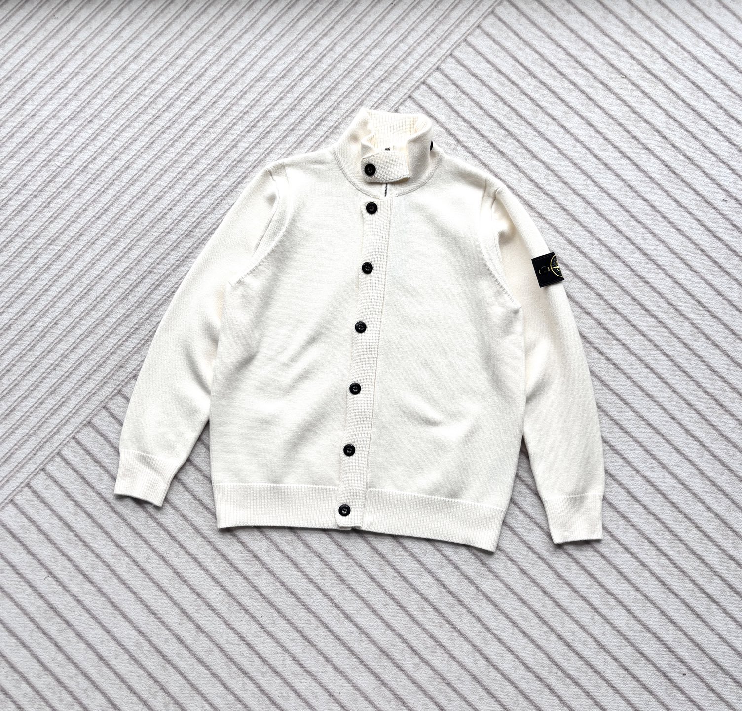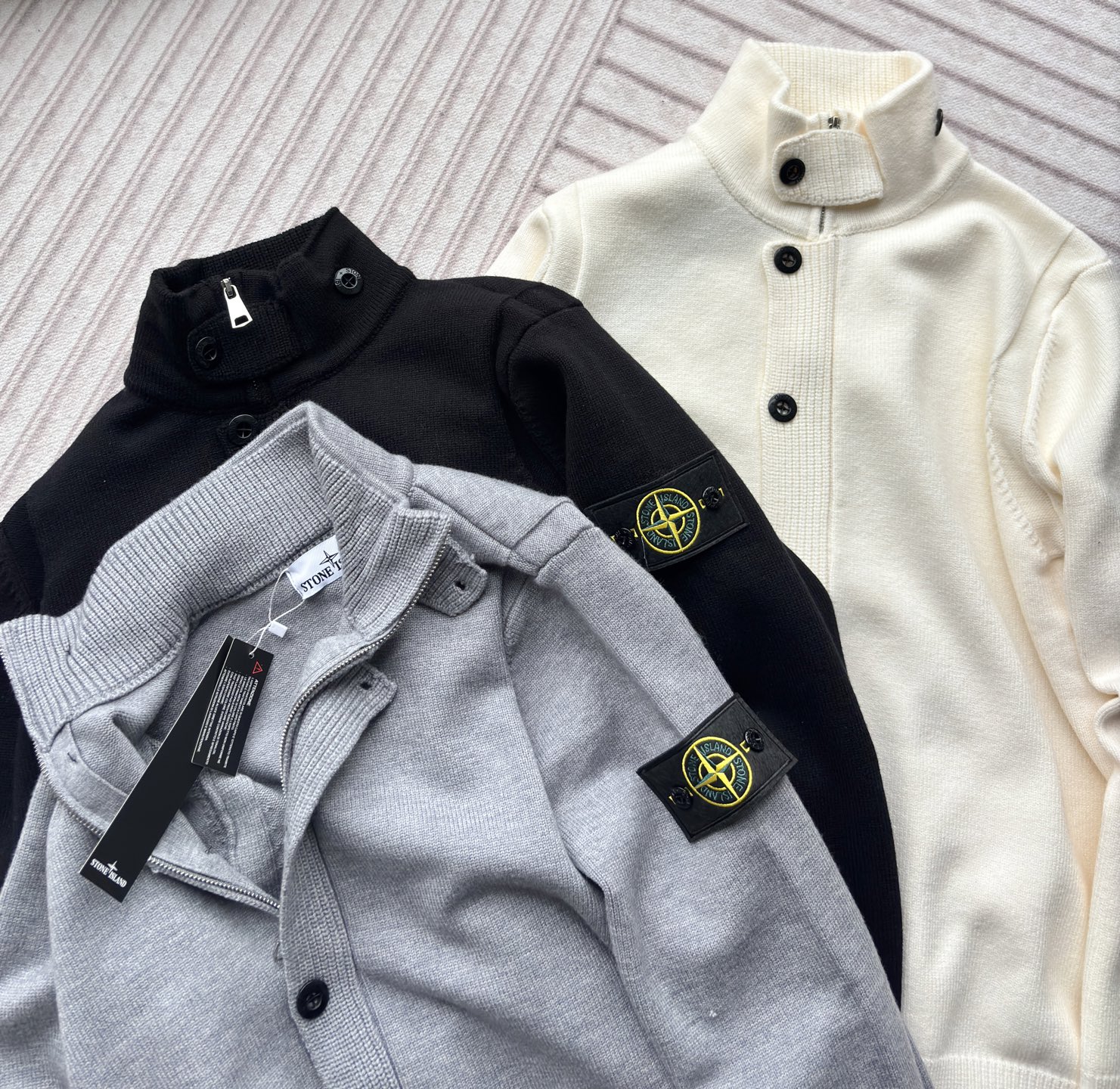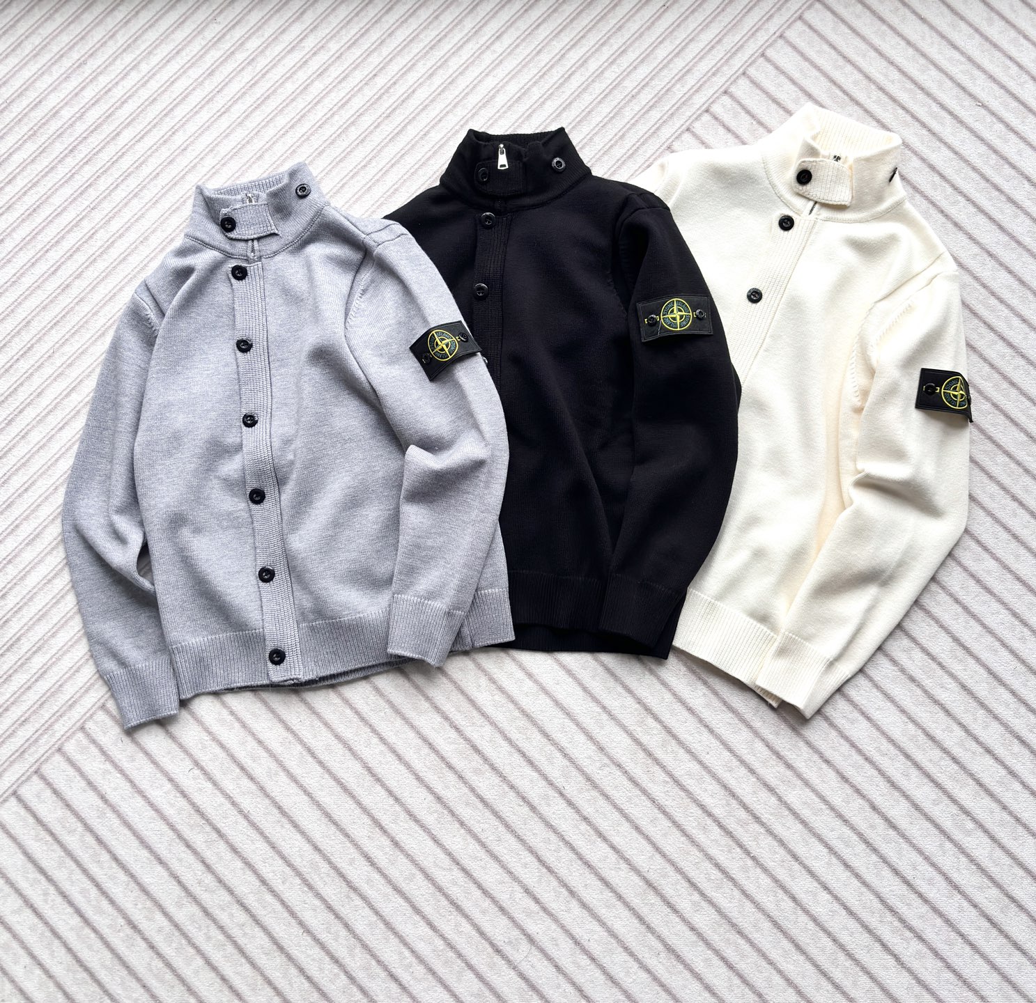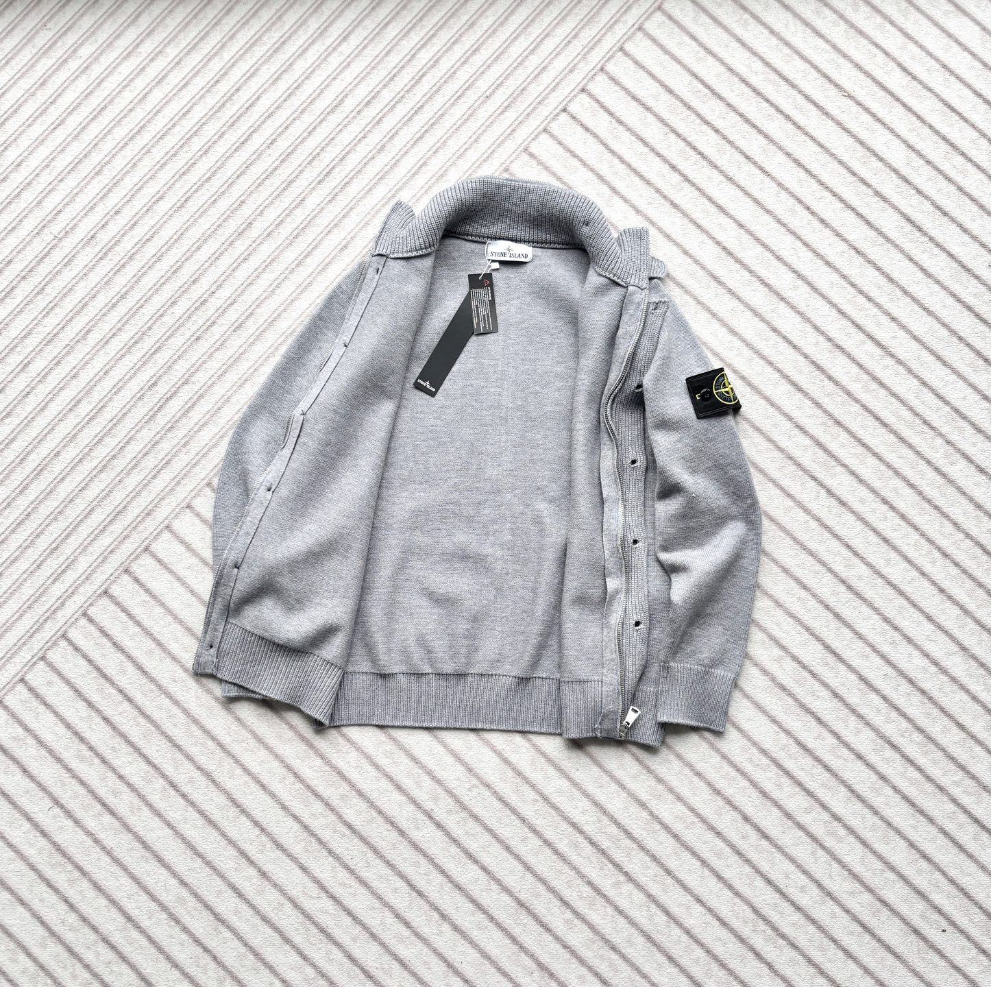 Tags: Button Up Sweater, Cotton Blend Zip Cardigan, Designer Knitwear, Mens Knit Sweater, Stone Island Cardigan