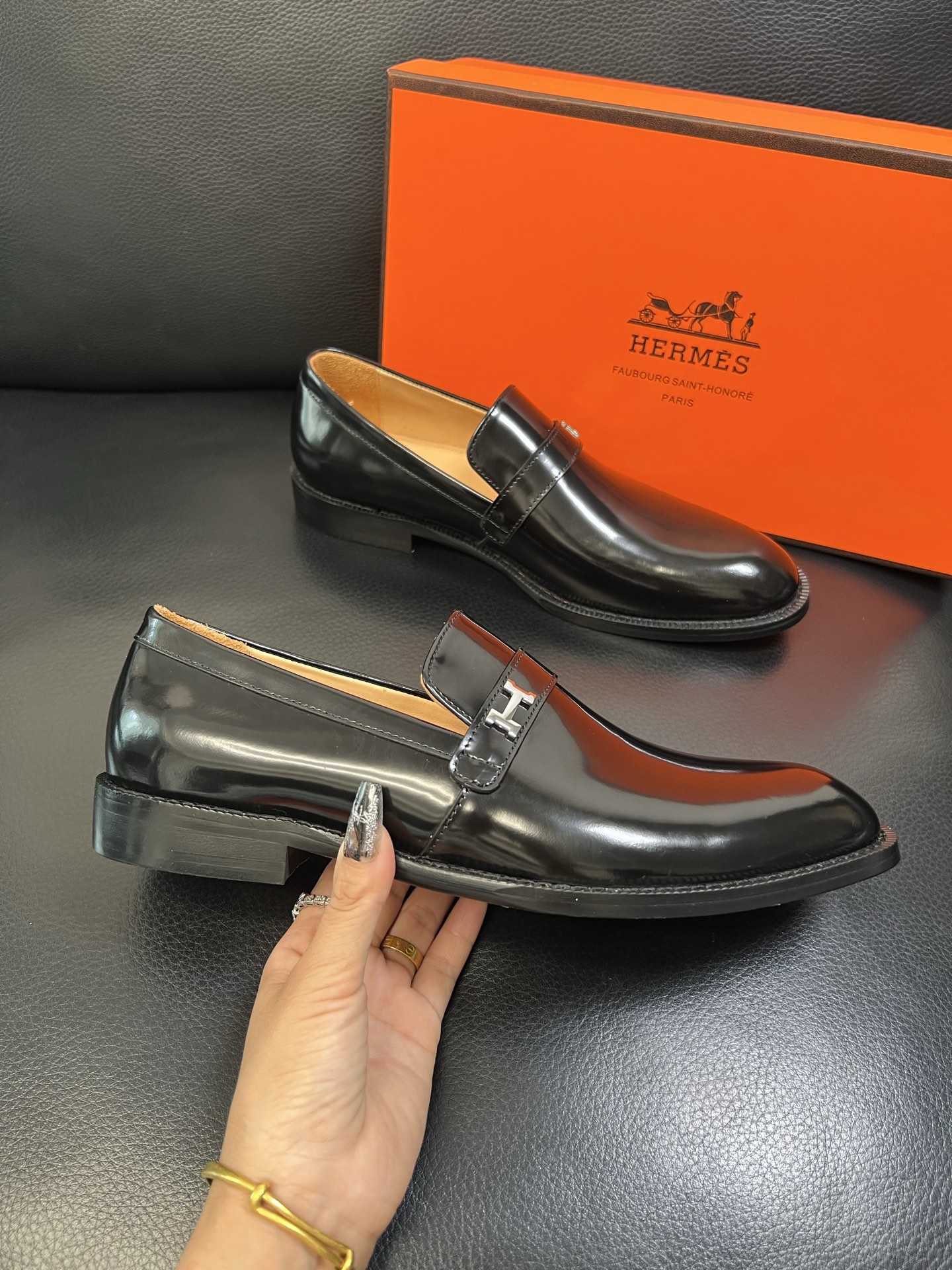 Tags: Black Dress Shoes, Hermes Leather Loafers, Italian Leather Shoes, Luxury Slip On Shoes, Men's Designer Shoes