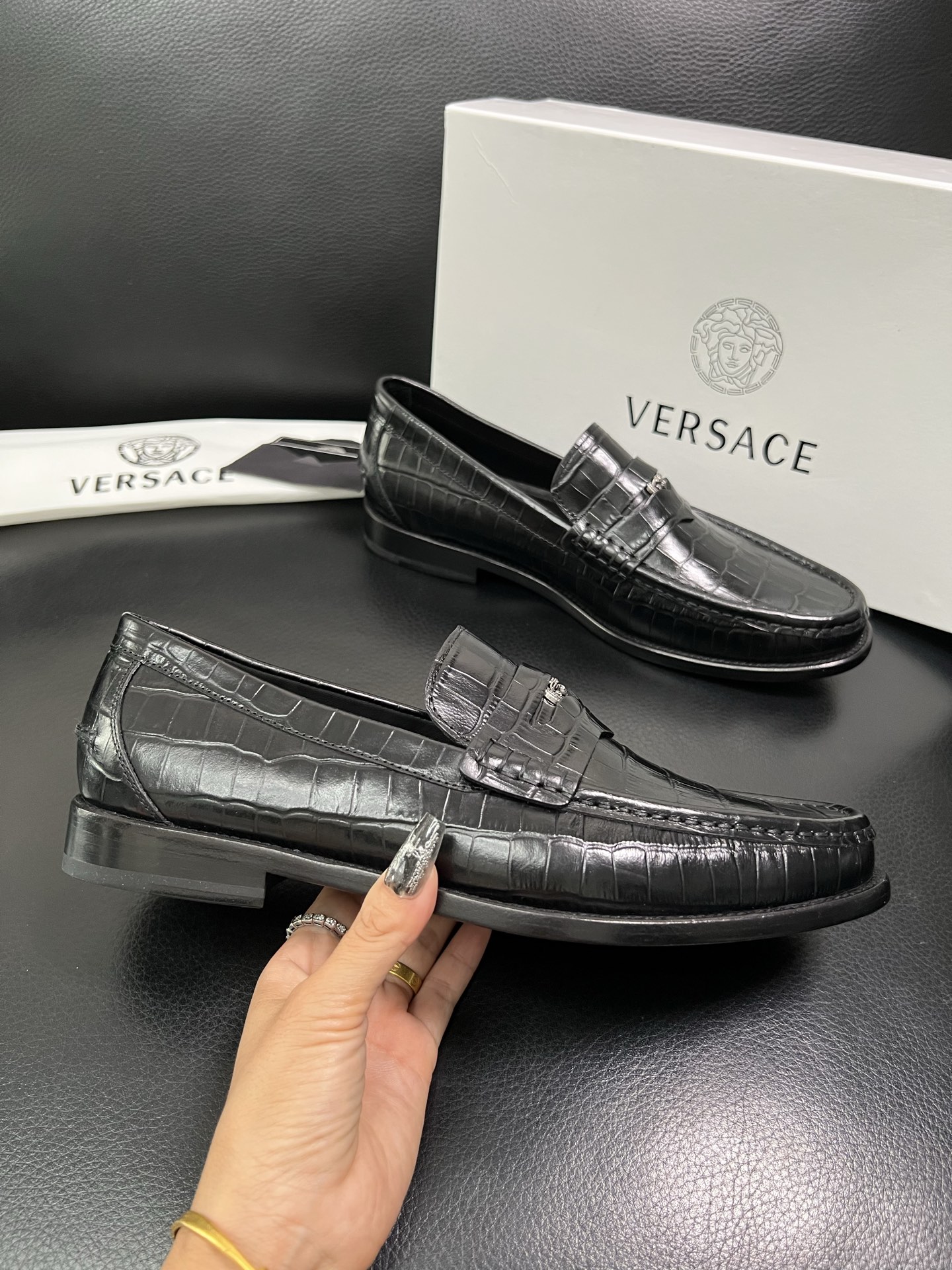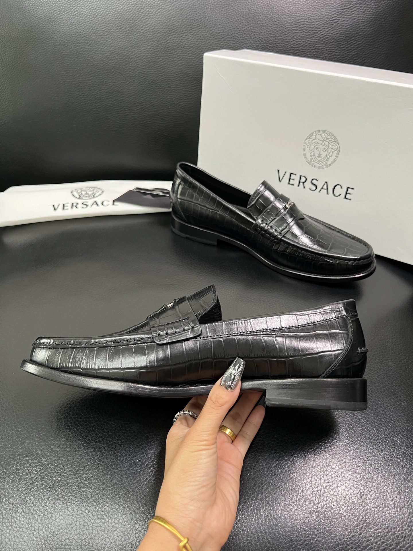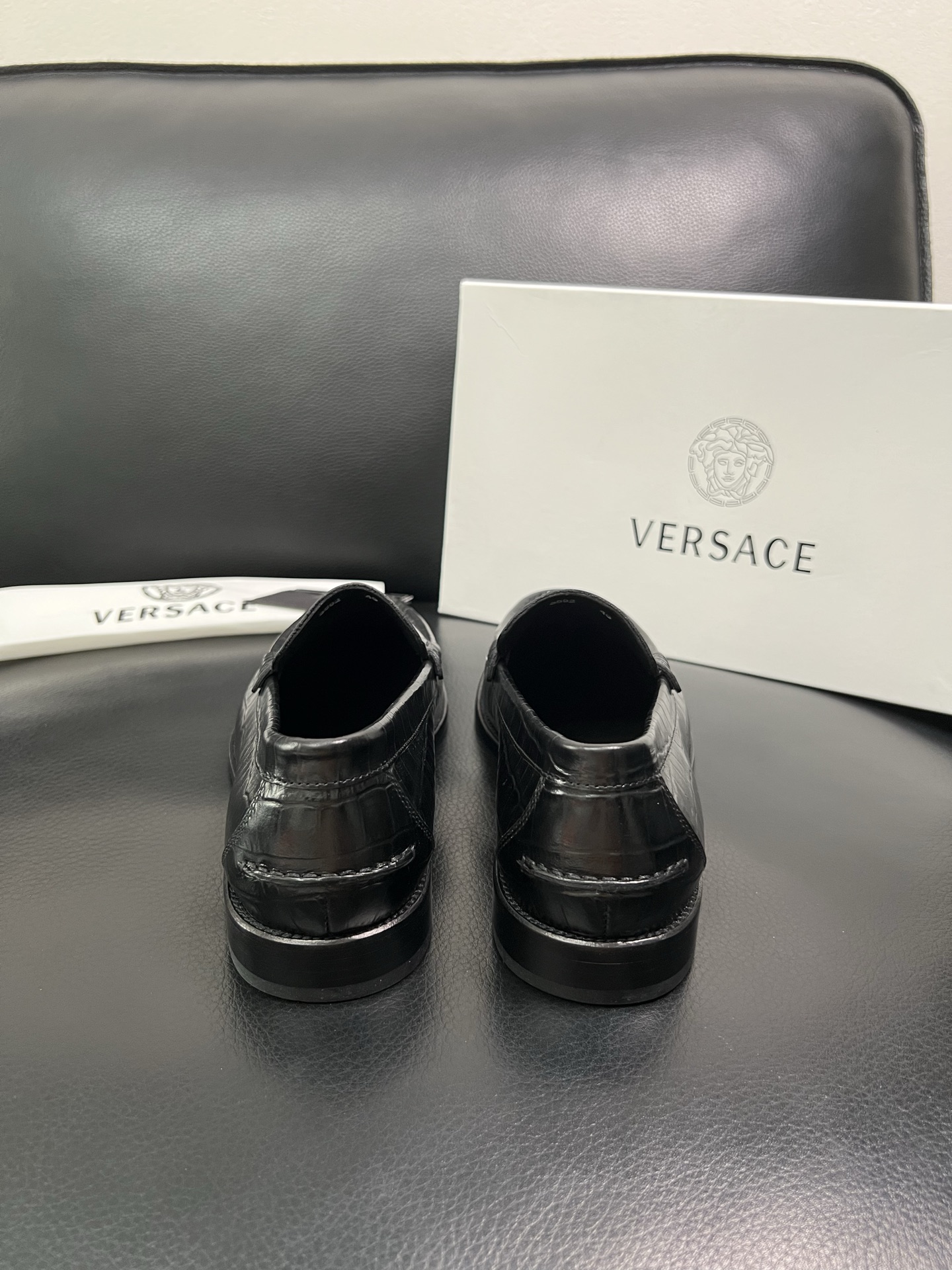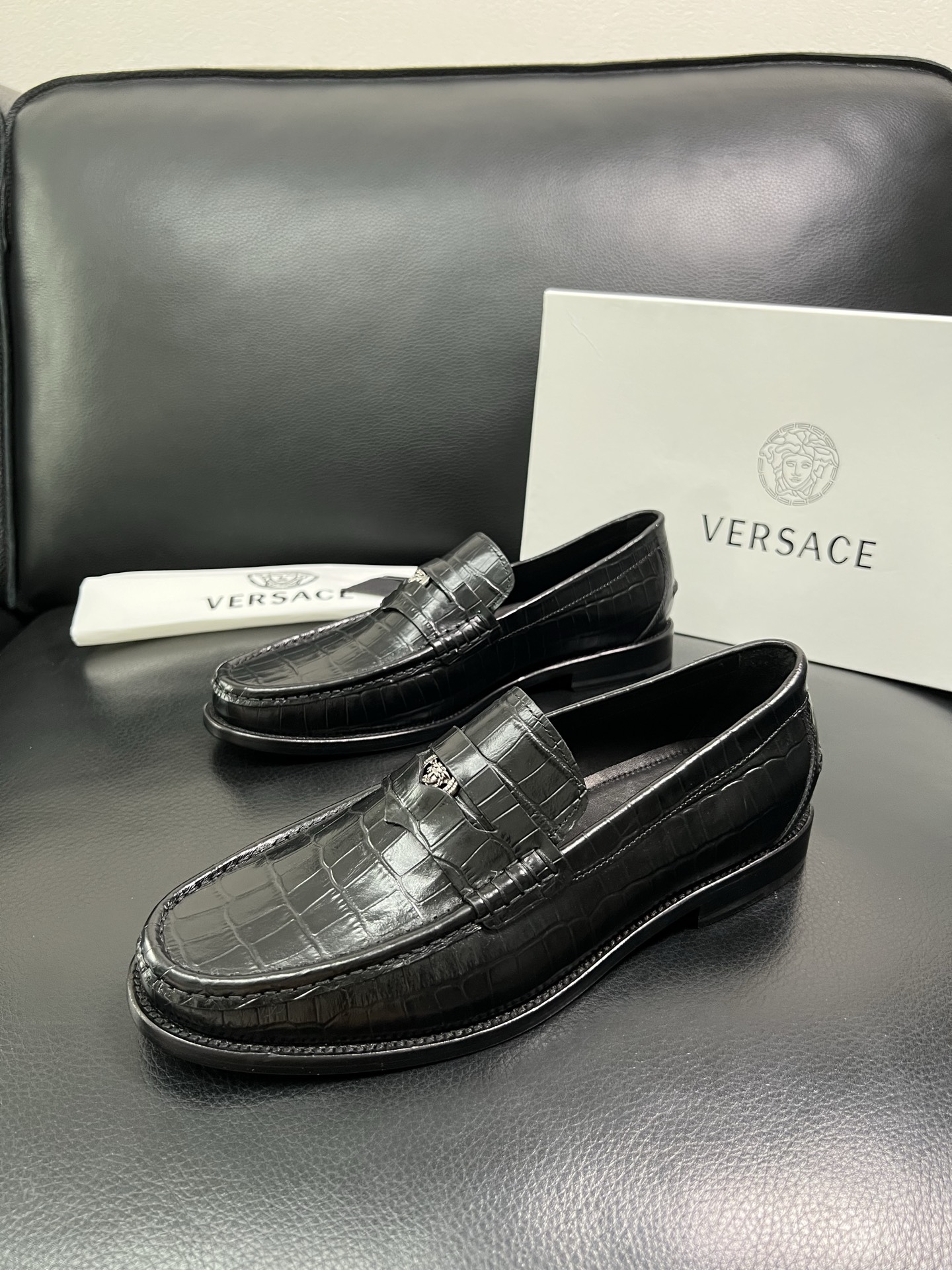 Invest in these Versace loafers to add a touch of luxury to your wardrobe. These shoes combine timeless design with superior materials, making them a must-have for any discerning gentleman. Experience the unparalleled quality and style that Versace is renowned for.