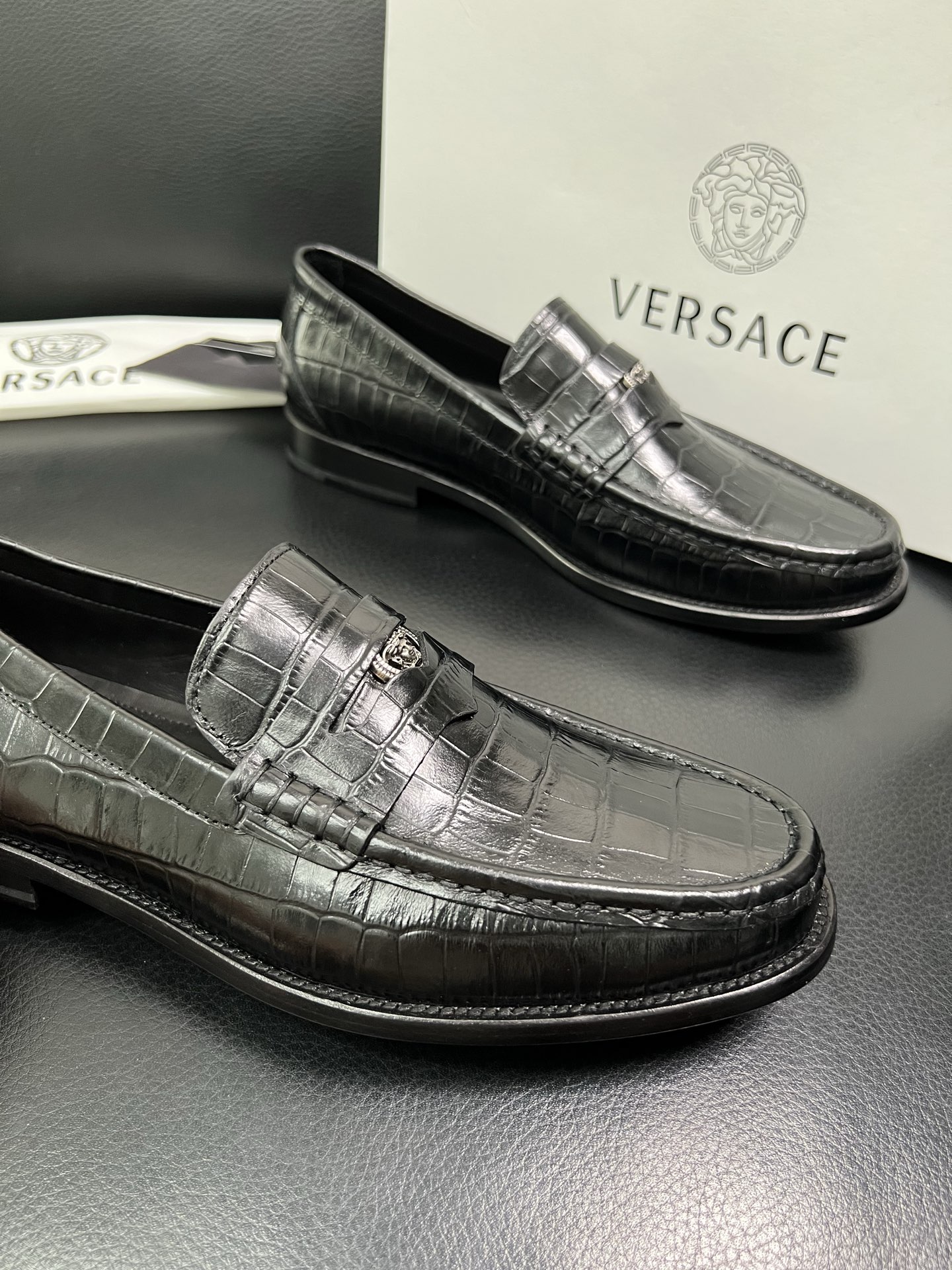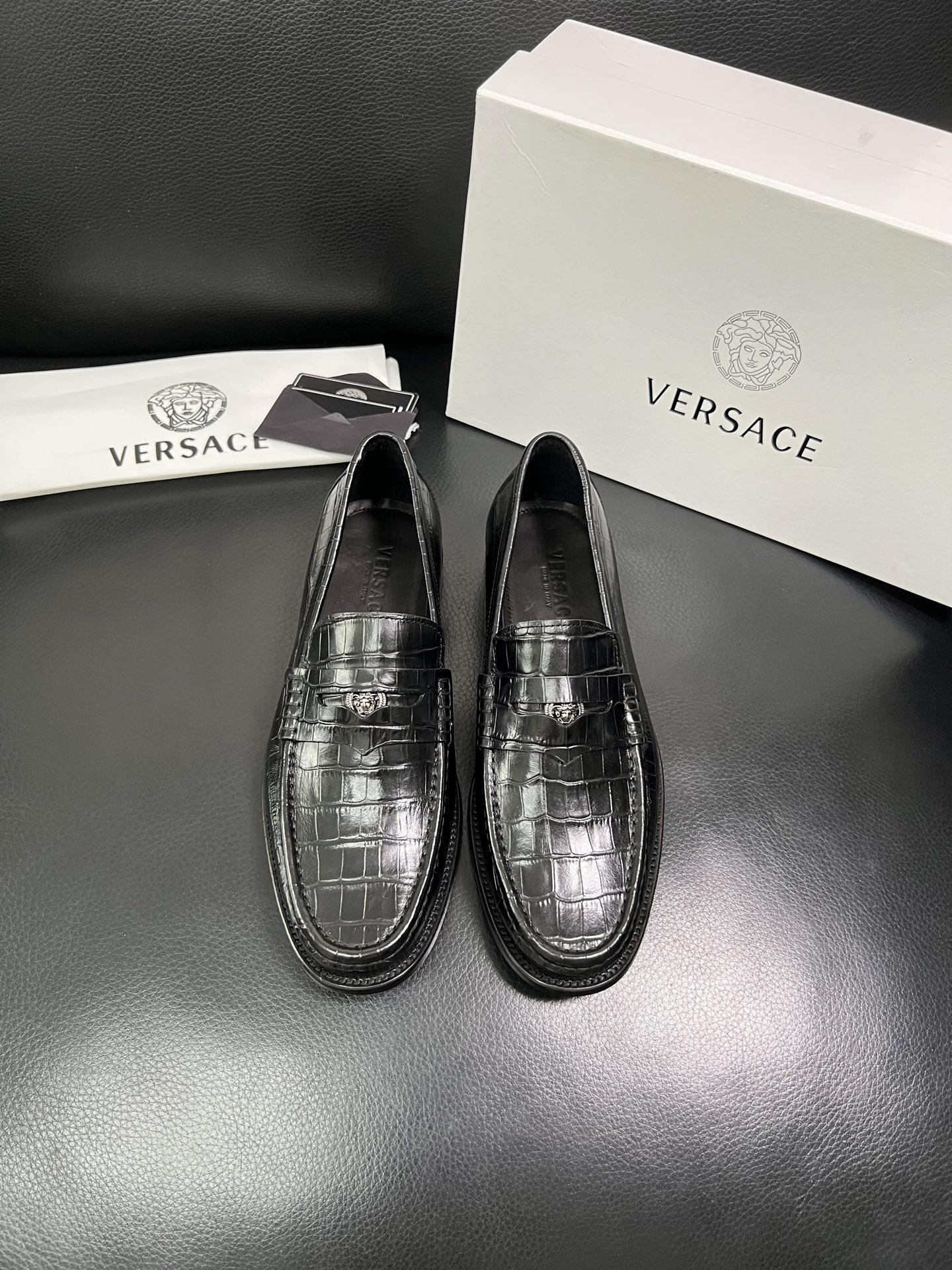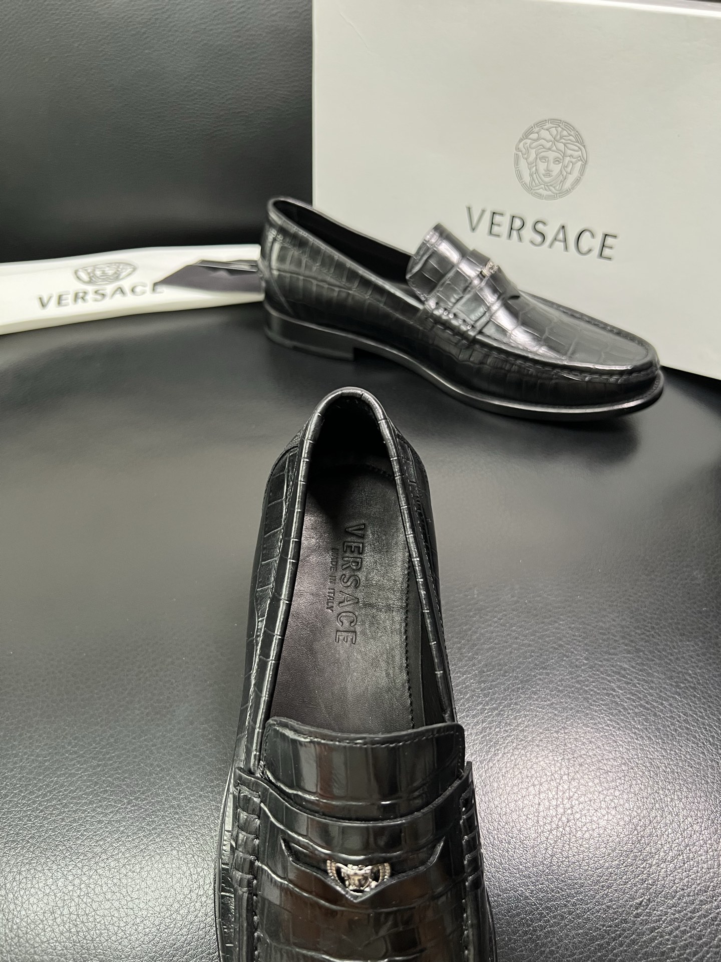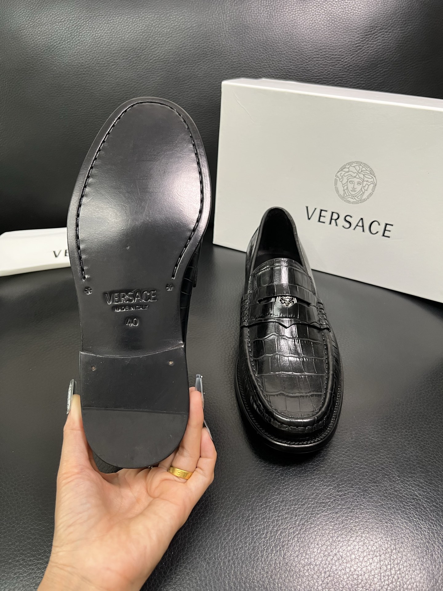 Invest in these Versace loafers to add a touch of luxury to your wardrobe. These shoes combine timeless design with superior materials, making them a must-have for any discerning gentleman. Experience the unparalleled quality and style that Versace is renowned for.