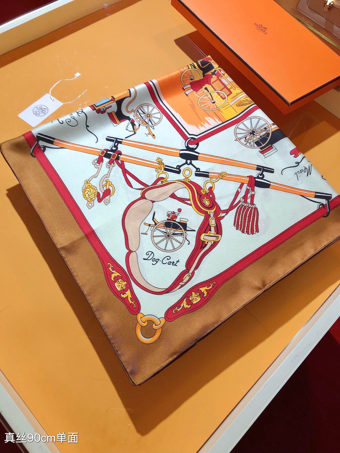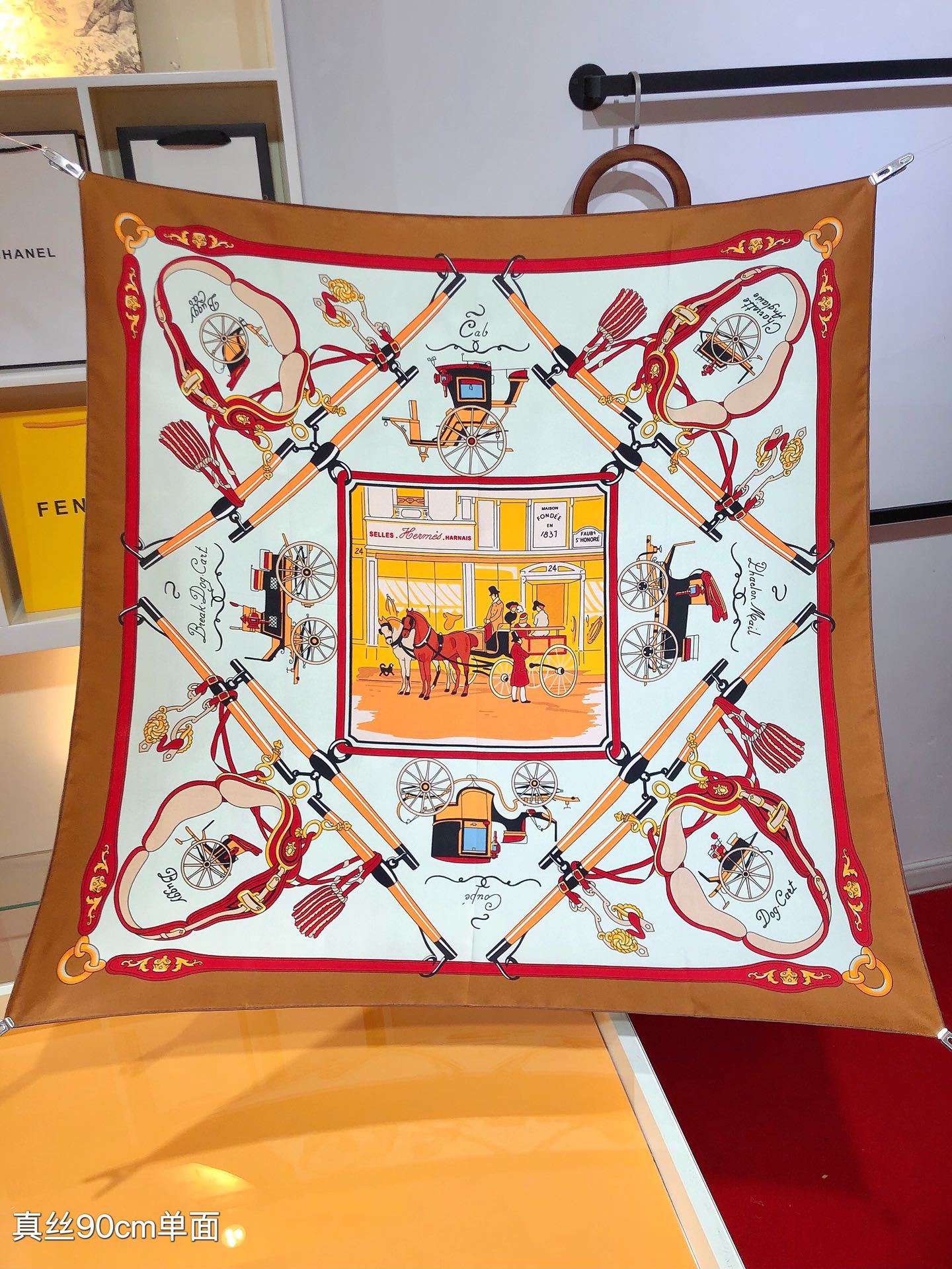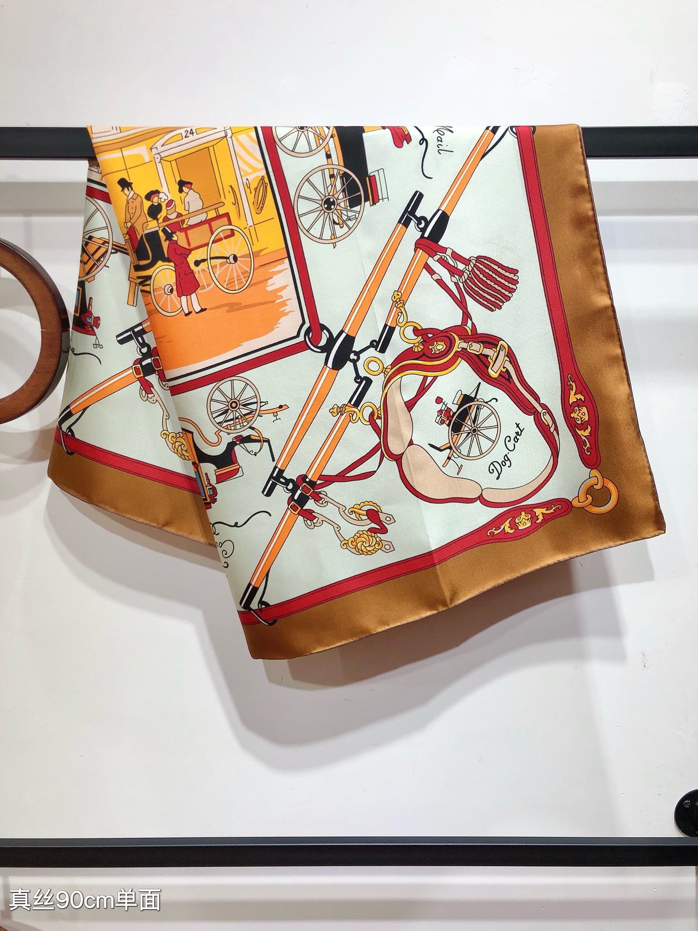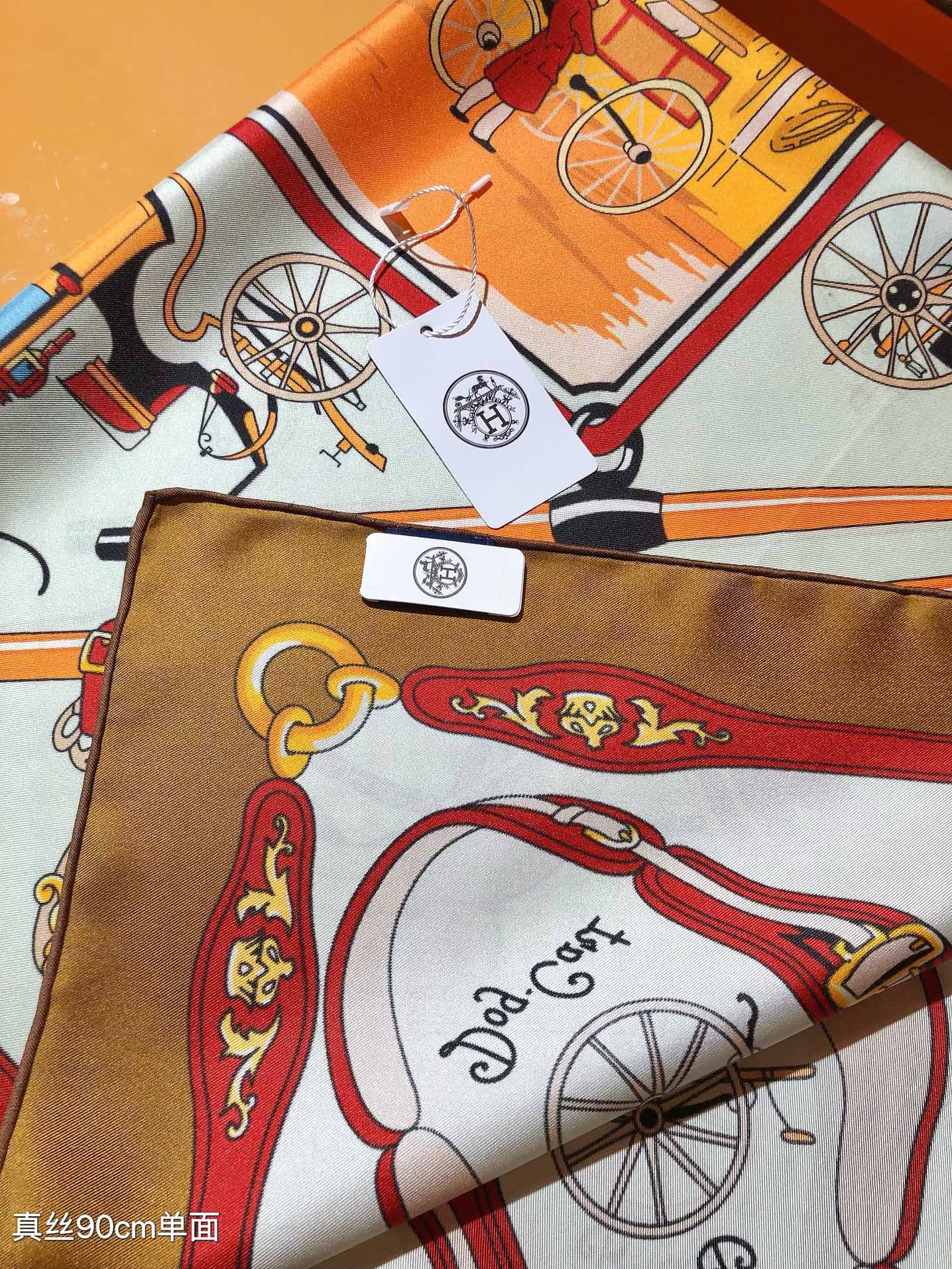 🌼SHMS2446🌼Original Hermès [horse-drawn carriage] 90cm silk square scarf👍 No. 24 Avenue Fubao, Sannoreau houses a small illustrated dictionary to help you review the knowledge of classic carriages, which inspired Hugo Grid in 1948 The creative inspiration of Hugo Grygkar, who used his superb skills and dexterity to create this geometric scarf pattern The wheels turn quickly, bringing high excitement. Made of twill silk + hand-curled cutting-edge technology, it is soft, light and easy to wear. Can be used all year round‼ ️Quantities are limited, place your order early💟【Specifications of this model: 90x90cm 100% twill silk】