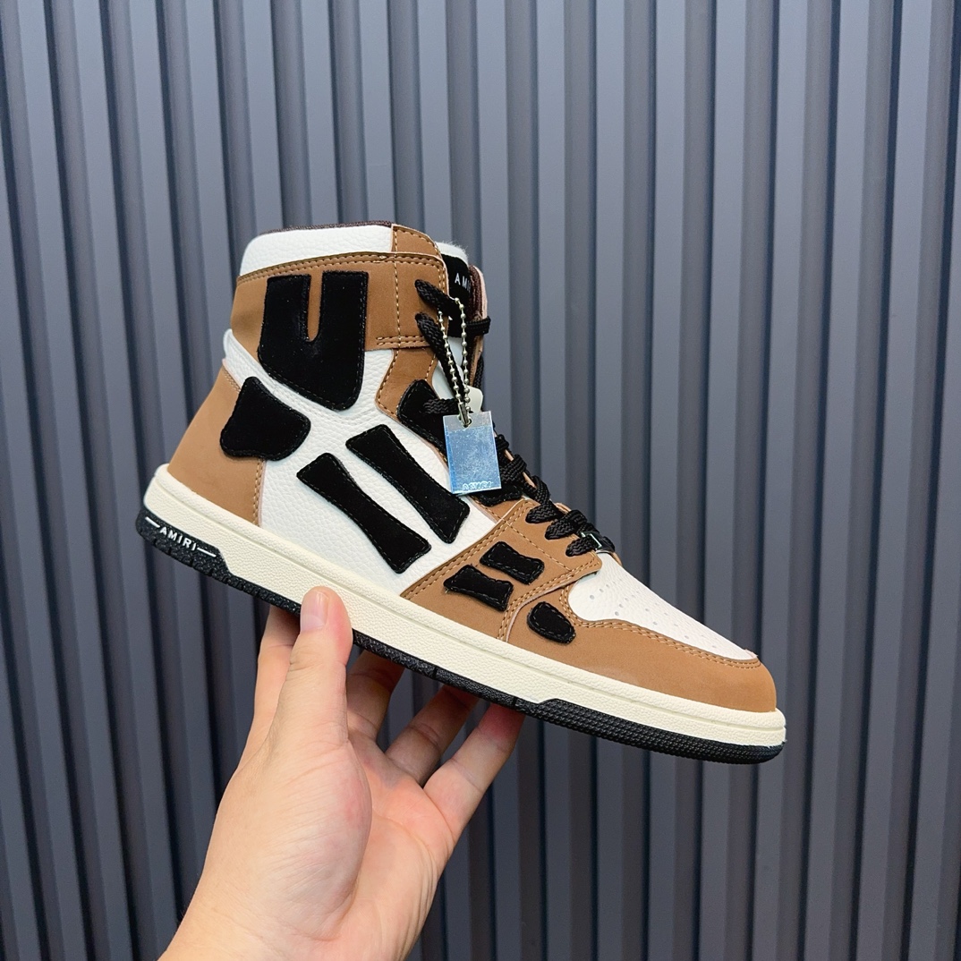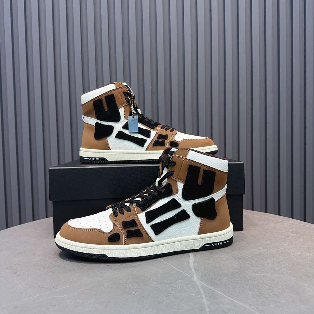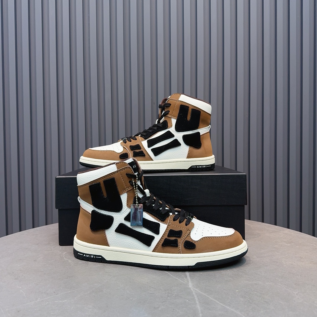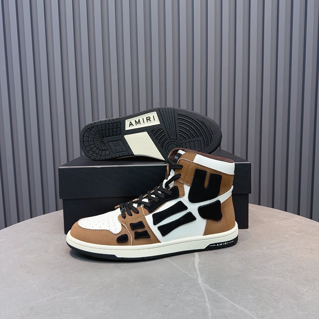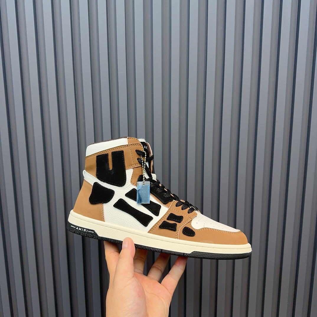 Amiri High-Top Sneakers in Brown and White Leather, Stylish Designer Footwear