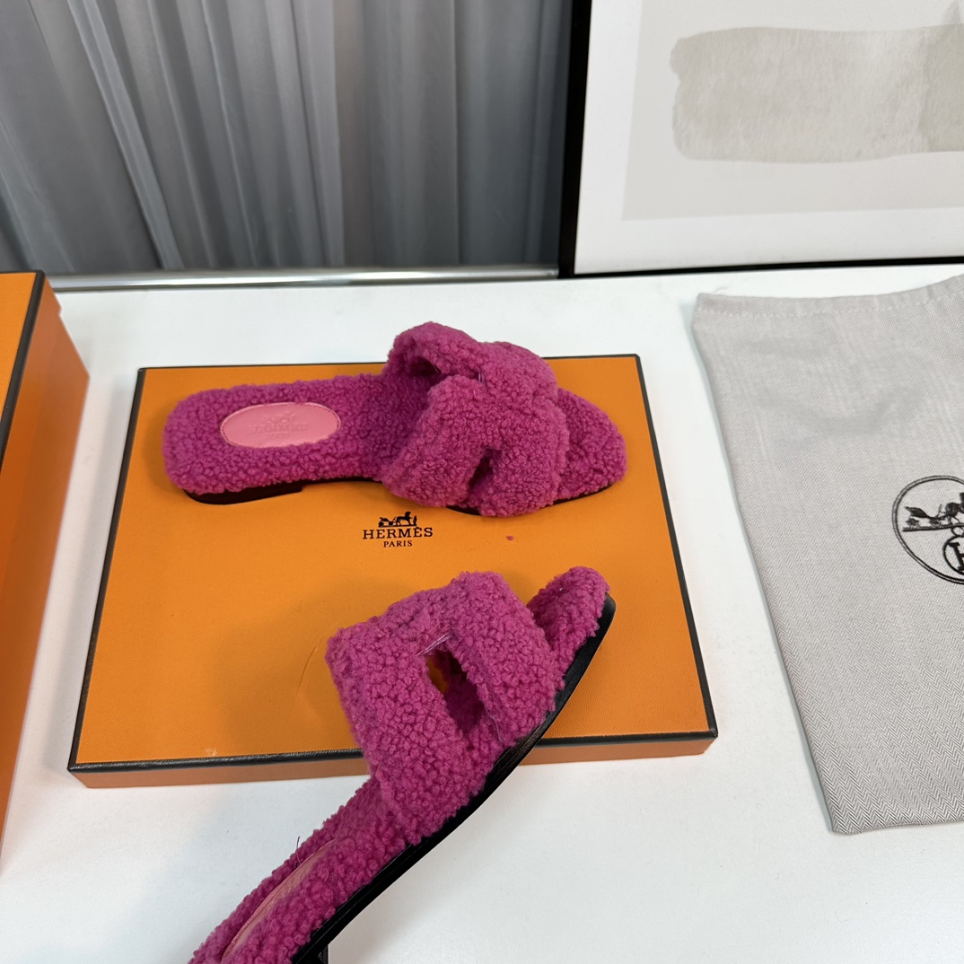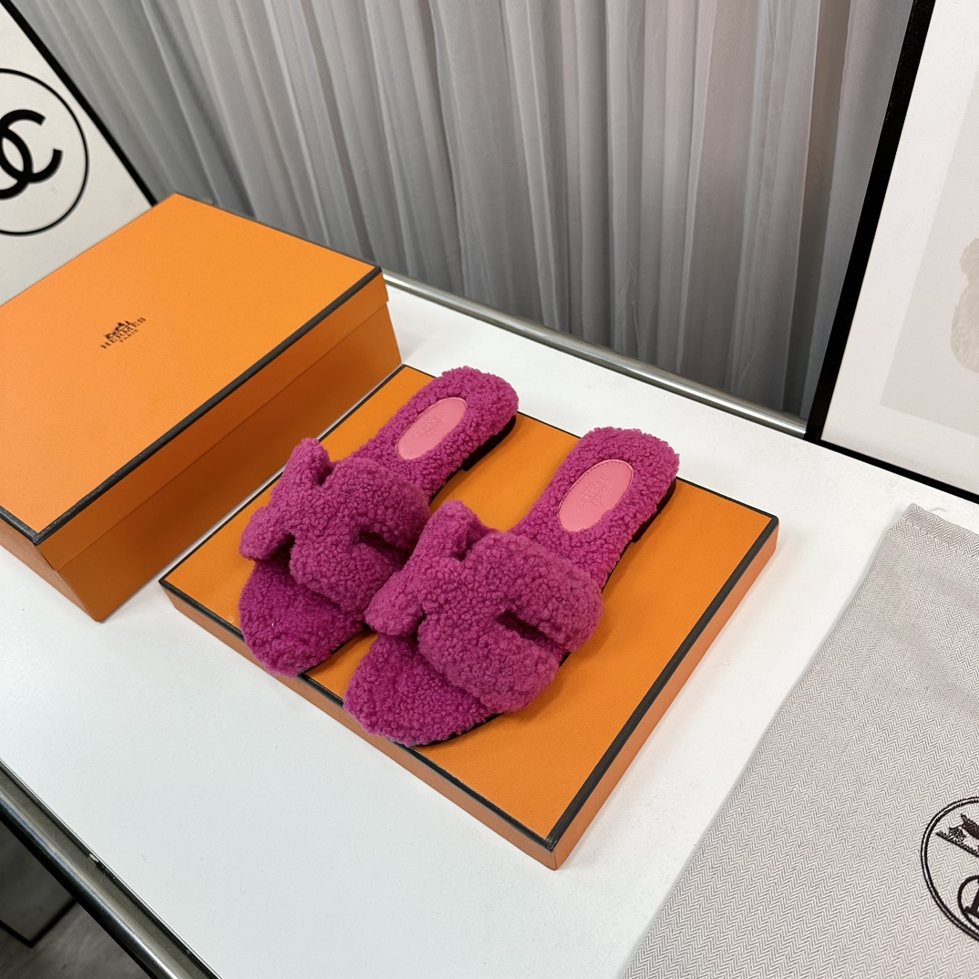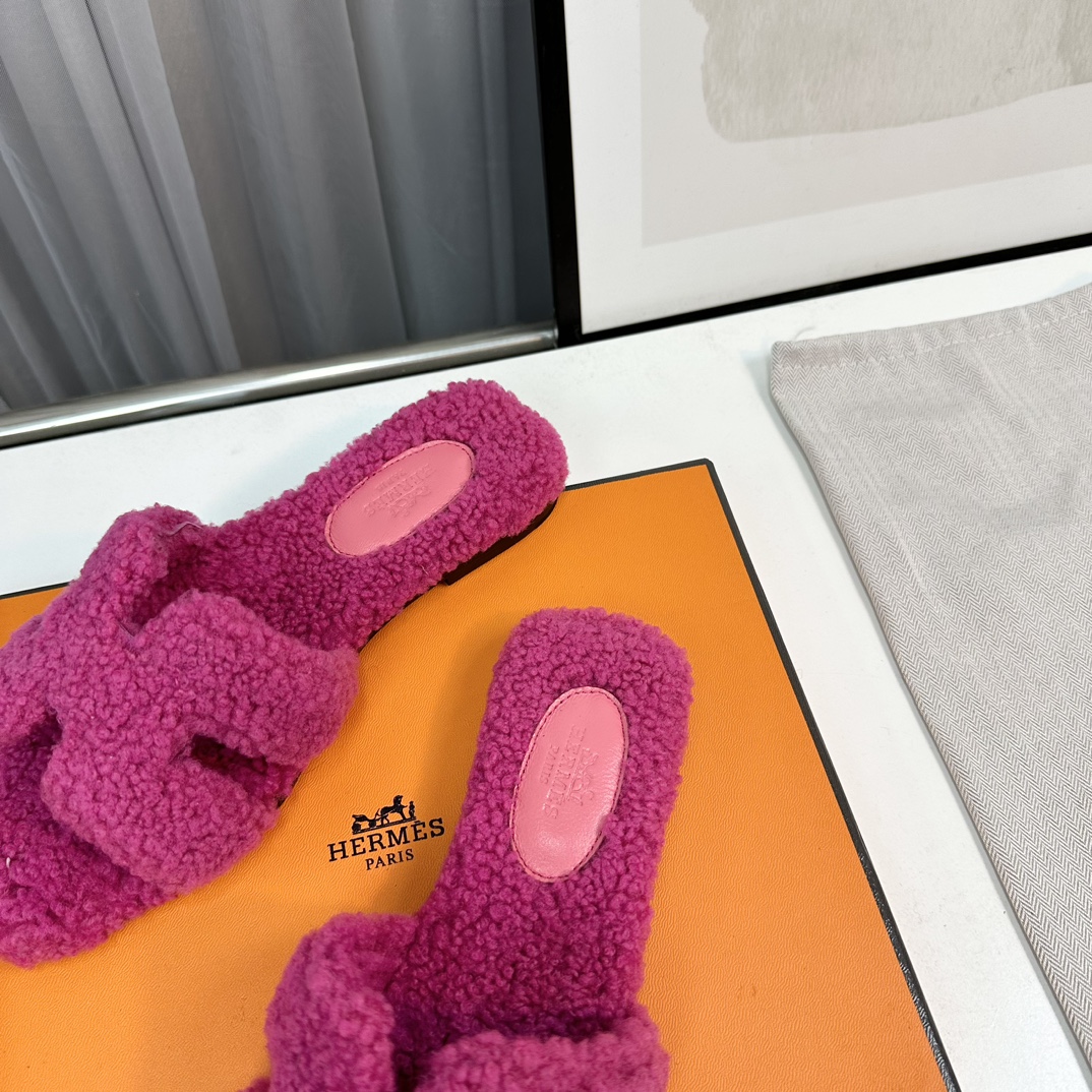 Tags: Designer Flat Sandals, Hermes Shearling Slides, Luxury Women's Footwear, Teddy Wool Slippers, Warm Wool Loafers, Winter Home Shoes
