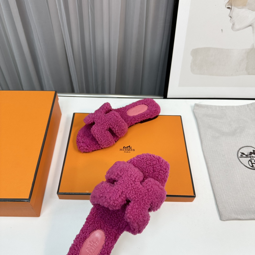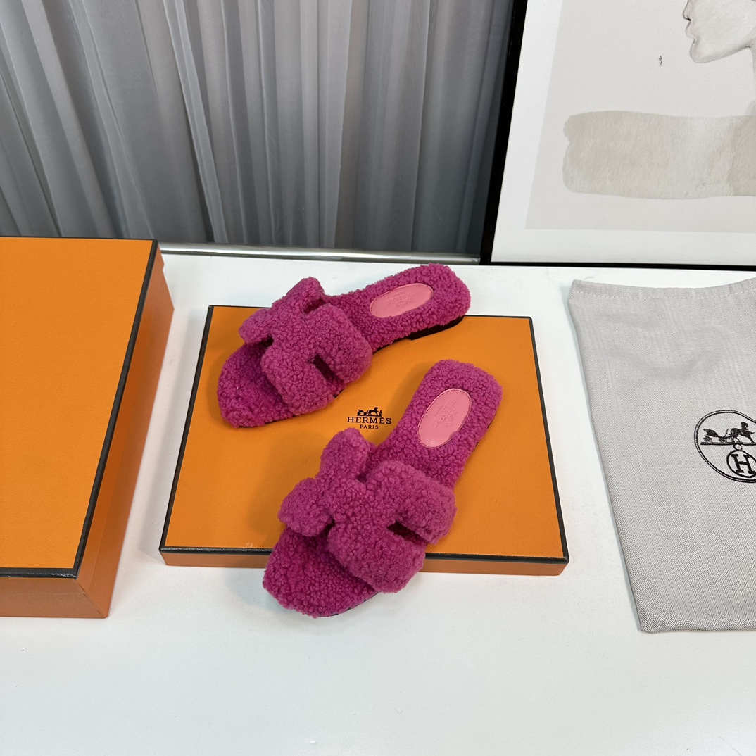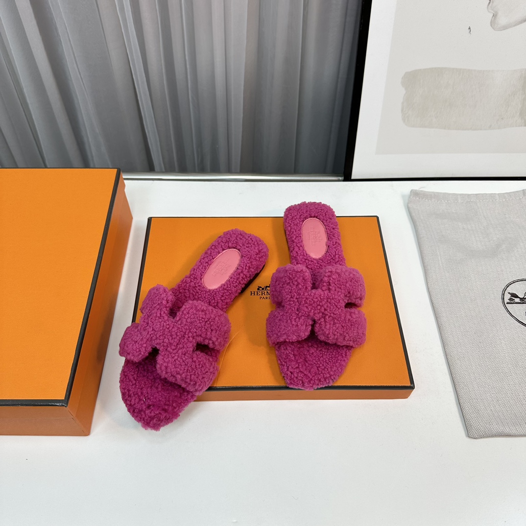 Tags: Designer Flat Sandals, Hermes Shearling Slides, Luxury Women's Footwear, Teddy Wool Slippers, Warm Wool Loafers, Winter Home Shoes