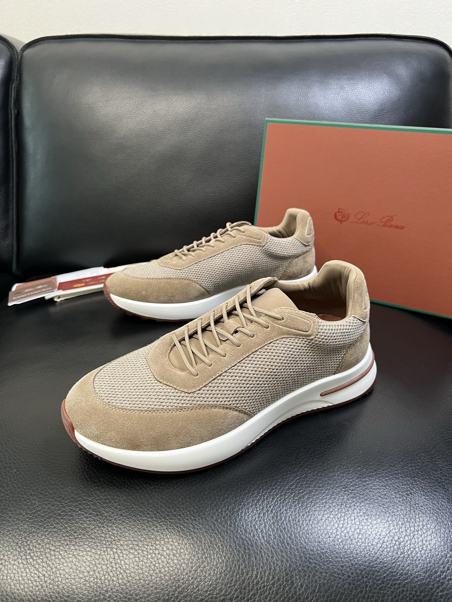 Loro Piana Men's High-Quality Beige Suede & Mesh Sneakers, Sizes 38-46 Available