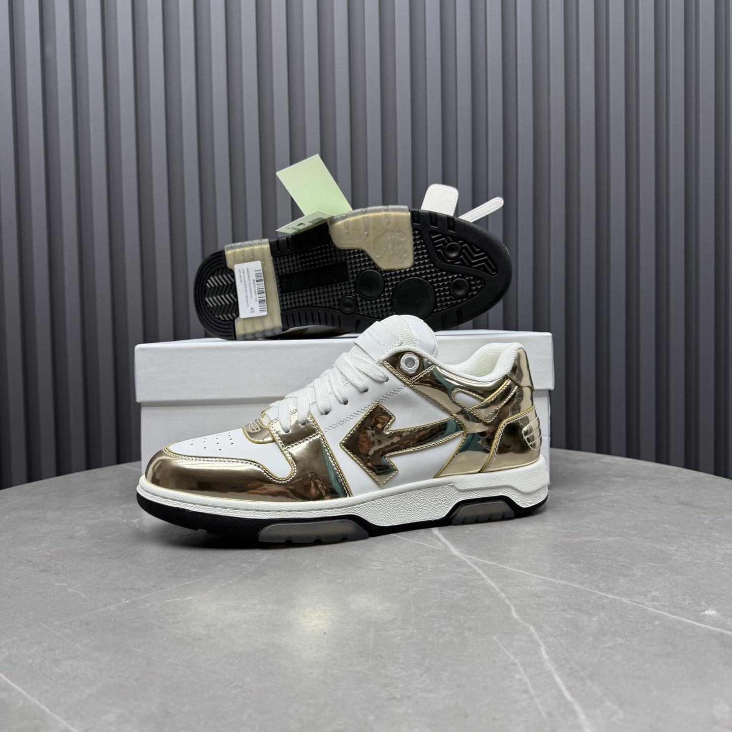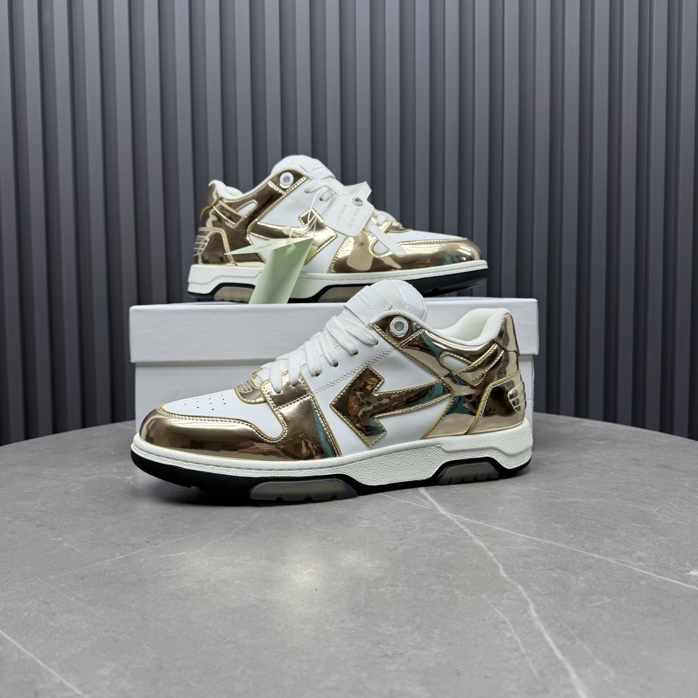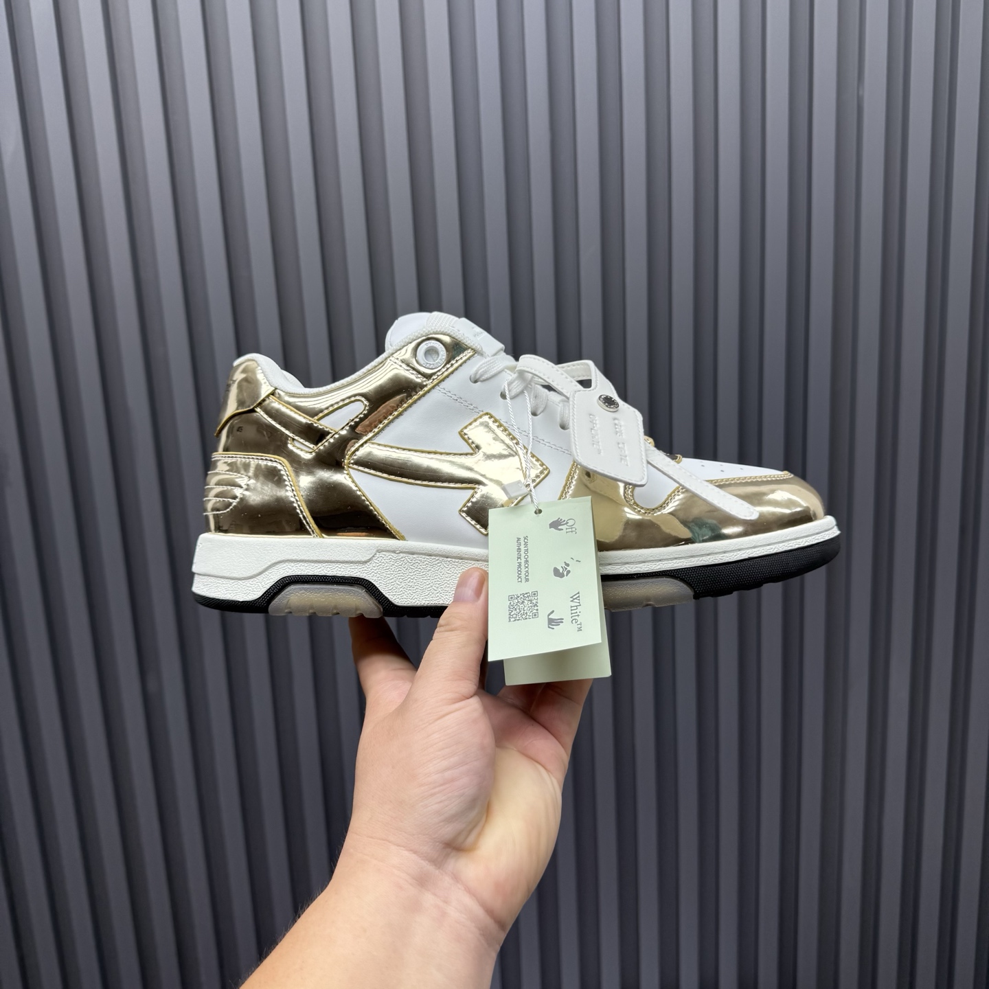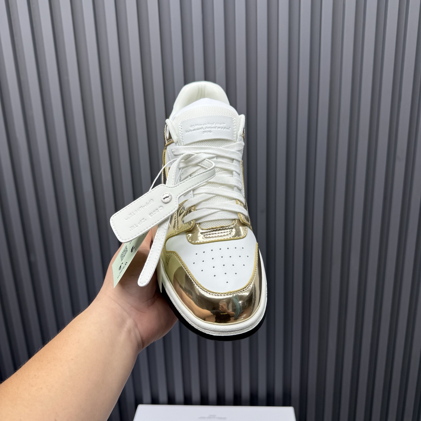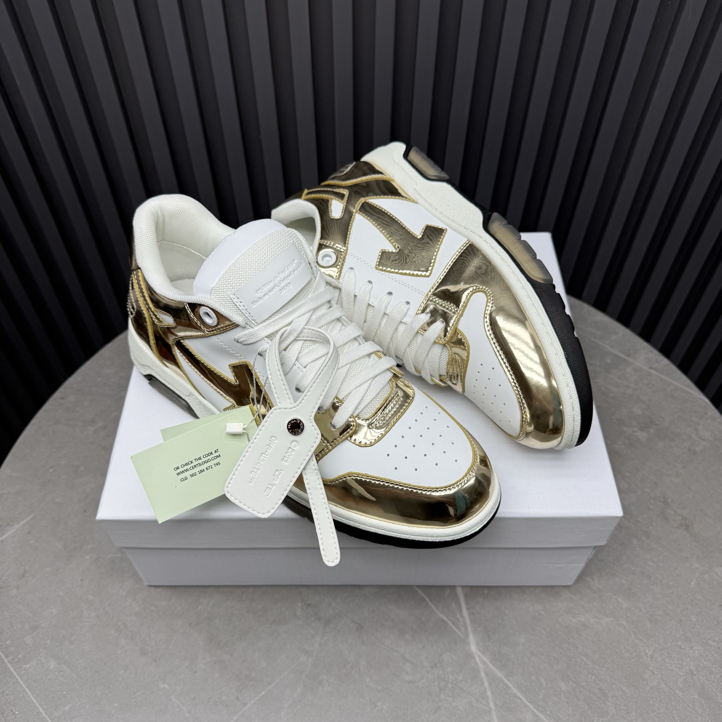 Tags: Designer Sneakers, Gold Leather Sneakers, Low Top Sneakers, Off-White Sneakers, Out Of Office Shoes, White Sneakers