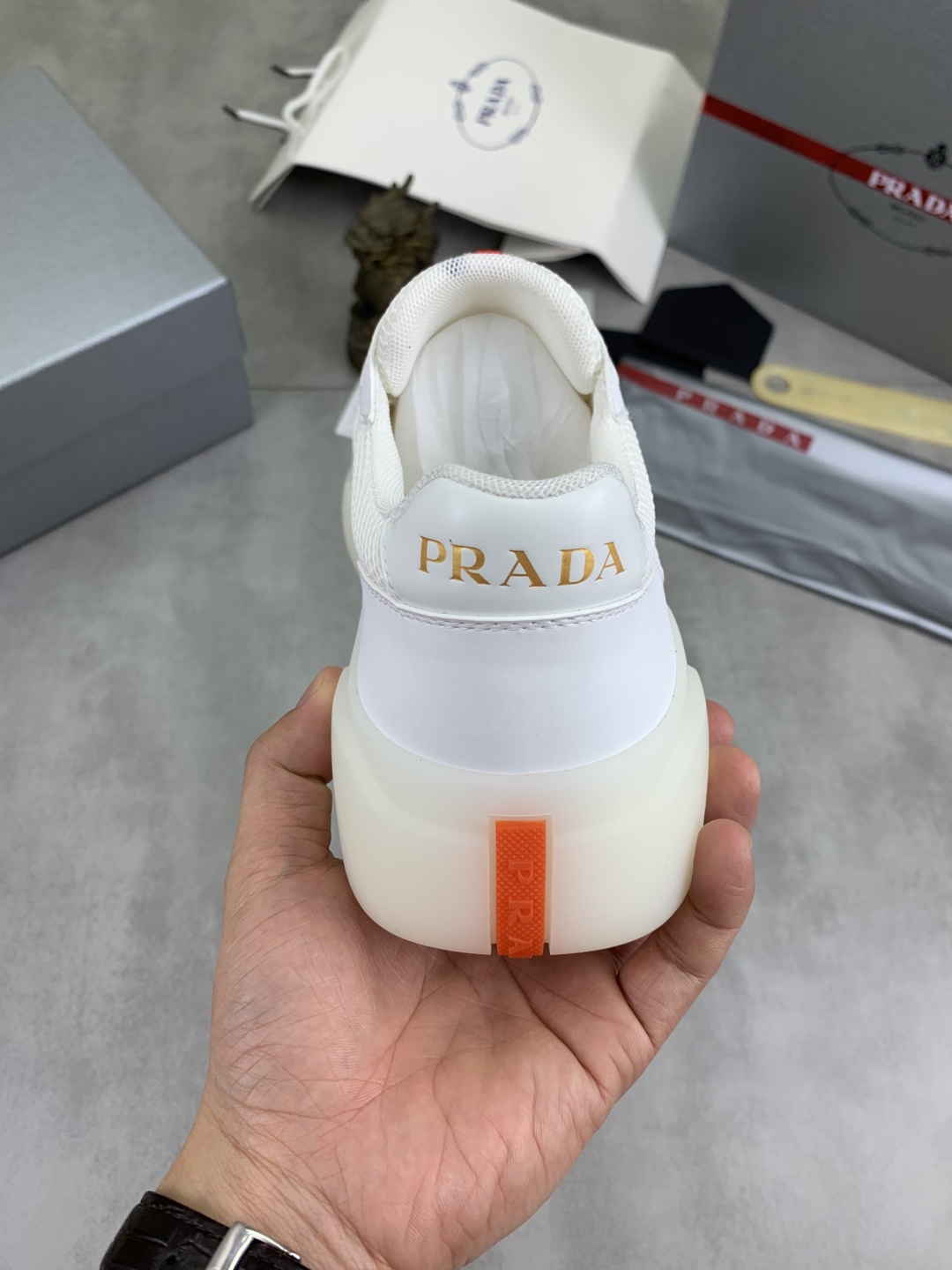 Tags: Casual Sneakers For Men, Designer Fashion Shoes, Luxury Men Footwear, Prada Men Sneakers, Premium Leather Shoes, White Leather Sneakers